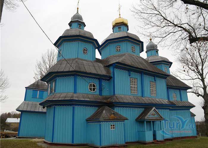 Деревянная Преображенская церковь в селе Тучин считается жемчужиной волынского народного зодчества. Трехсрубный храм на каменном фундаменте построен в 1730 году. Сегодня это действующая церковь. В отличие от большинства других волынских деревянных церквей, Преображенская обладает более развитой внешней объемной пластикой. В основу плана церкви положено обычное 3-частичное членение на срубы. Каждый сруб, будто самостоятельно развивался по вертикали, заканчиваясь собственной восьмигранной главой. В определенной степени она приближена к архитектурной образности деревянного культового зодчества Подолья и Левобережной Украины XVII-XVIII столетия.