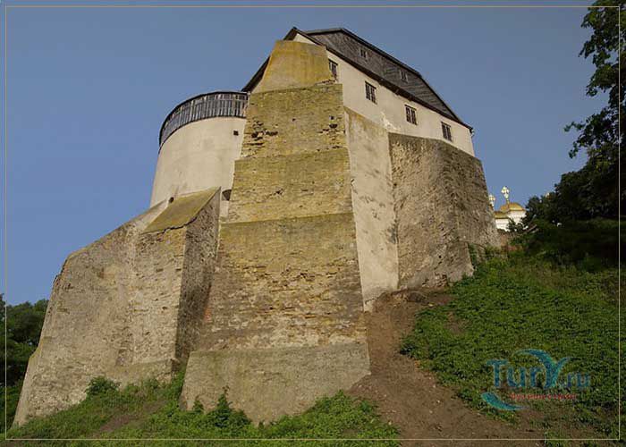 Острожский замок в городе Острог был возведен на вершине холма над рекою Вилия в 1241 году князем Даниилом Острожским. Замок Острожских с ХIV по ХVI век был родовым гнездом самых богатых магнатов Речи Посполитой того времени. За всю историю своего существования замок пережил несколько перестроек и модернизаций. В настоящий момент в архитектурный ансамбль замка составляют Башня Мурованная, воздвигнутая в ХIV веке, Круглая башня, которую построили в ХVI веке, Богоявленский собор ХV – ХVI веков постройки, надвратная колокольня, построенная в 1905 году, и фрагменты стен. Богоявленская церковь входила в общую систему замковых укреплений, так как северная стена была связана с крепостными стенами, имела бойницы и дозорную площадку. В юго-восточной стороне замка расположена Башня Мурованная, в которой находится Краеведческий музей. На юго-западе замка находится Круглая башня, которая построена из кирпича и камня и представляет собой трехъярусное сооружение, с трех сторон укрепленное контрфорсами. В плане строение имеет круглую форму, имеет трапецеидальный вырез в сторону дворца. В конце ХVI столетия верхним ярусам башен придали облик в стиле ренессанса.