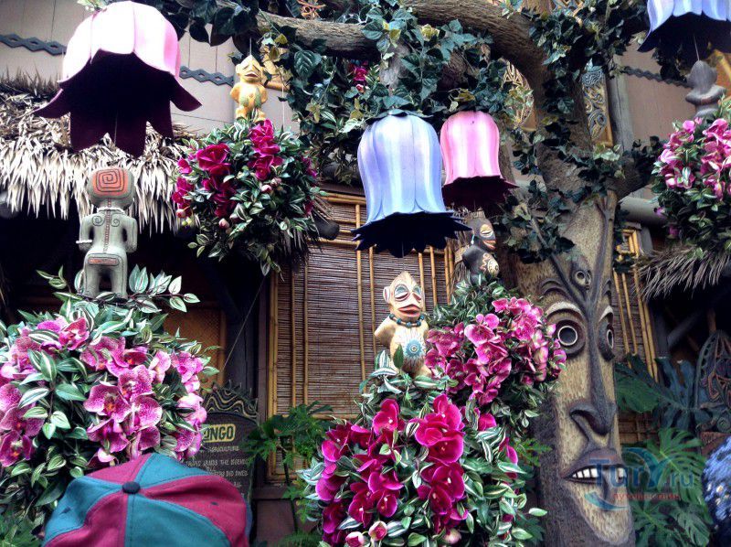 8. Страна Приключений (Adventureland) - здесь можно испробовать "Круиз по Джунглям" и "Эчентед Тики Рум". Наибольшей популярностью пользуется железная дорога по мотивам приключений Индианы Джонса.