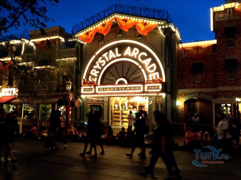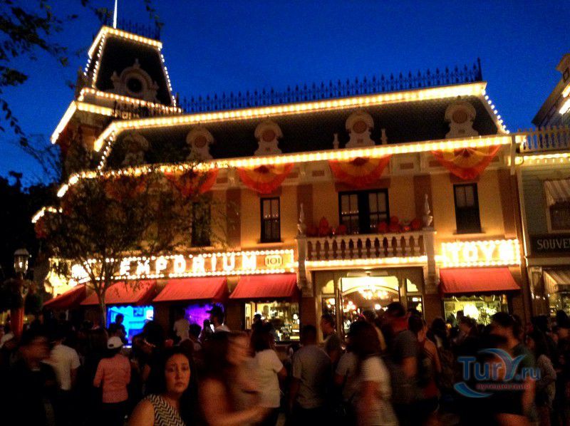 1. Мейн-стрит (Main Street) построена в стиле типичного американского города образца конца XIX века. Самые любимые публикой аттракционы - игровые автоматы и "Ключевой Момент" с мистером Линкольном. Здесь множество зон для фото, много ресторанов, кафе и сувенирных магазинов.