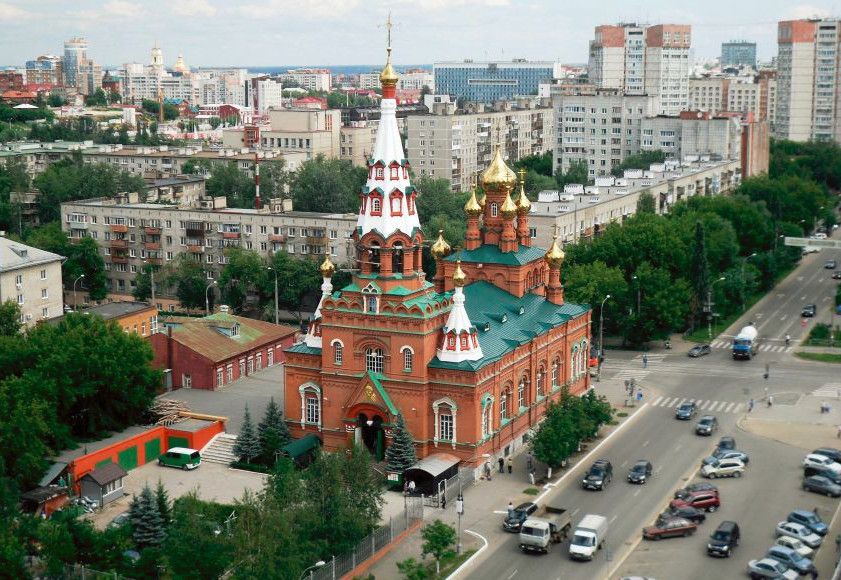 Эклектичная церковь начала ХХ века, примечательна как одна из семи многошатровых построек в России (другие: церковь Успения в Путинках в Москве, Троеверхая Дивная церковь в Угличе, Одигитриевская церковь в Вязьме, церковь в Свирских монастырях, деревянный Успенский собор в Кеми и деревянная церковь в деревне Нёнокса под Архангельском). Издалека краснокирпичную церковь с зелеными шатрами можно принять за стилизацию под Московский кремль.