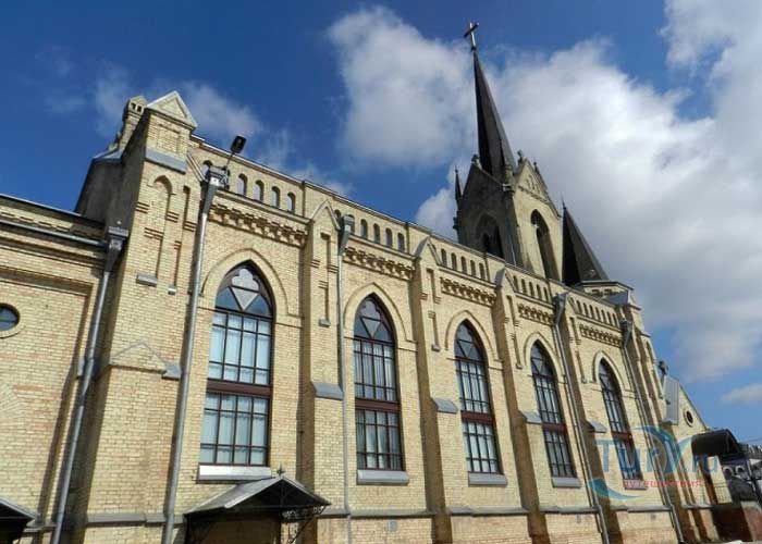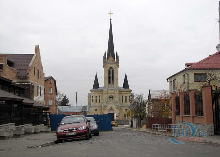 Лютеранская кирха в Луганске была построена в 1906 году как храм Луцкой лютеранской общины. Величественное здание было возведено в неоготическом стиле с использованием кирпича. Готические кирпичные постройки были и остаются очень популярными в Северной и Западной Европе. Кирха не штукатурена. Для облицовки использовался желтый высококачественный кирпич. Со времени постройки кирха была одним из главных храмов немецких колонистов Волыни. Однако, в связи с событиями Второй мировой войны храм пришёл в упадок. В советские времена кирха принадлежала различным учреждениям, главным образом архиву. С распадом СССР церковь была отдана общине баптистов, которые должным образом отреставрировали здание. Теперь она является памятником архитектуры, силуэт храма занимает важное композиционное и эстетическое место в Луцком культурном заповеднике.