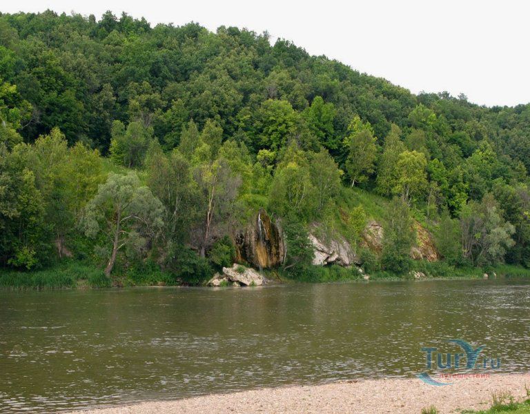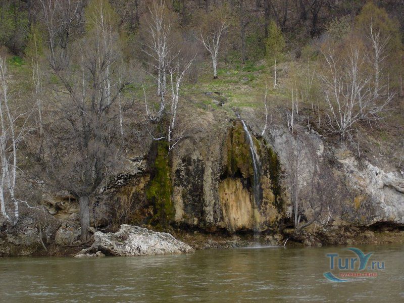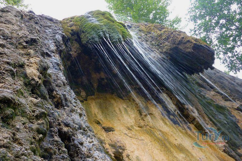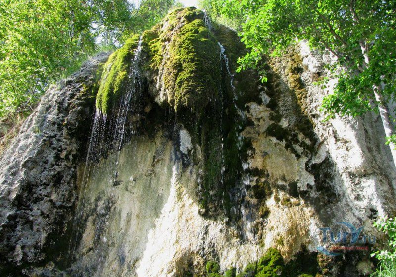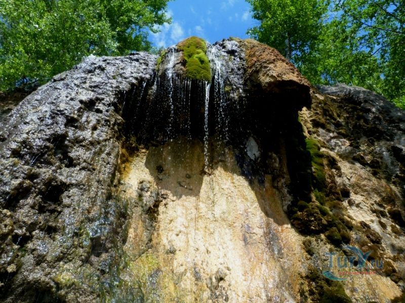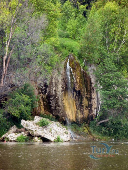Водопад находится с южной стороны скалы Плачущий камень, которая круто спускается к Инзеру. Падающая с шестиметровой высоты вода струится по камням, поросшим изумрудно-зеленым мхом, прямо в реку Инзер. С северной стороны скала полога и покрыта степной растительностью.