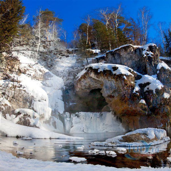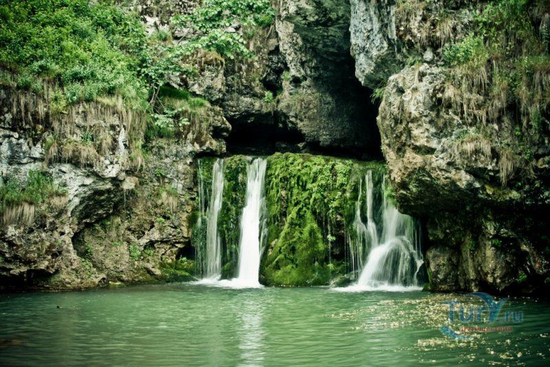Водопад Атыш - один из самых красивых водопадов Башкирии и одна из самых популярных туристических достопримечательностей Башкортостана. Он располагается на правом берегу реки Лемеза. Его название в переводе с башкирского означает "стреляющий", "бьющий". Считается, что это чудо сотворили воды двух рек - Атыш и Агуй. Гора, где находится водопад, сложена известняками возрастом 570 миллионов лет. Воды рек проточили в верхней части горы известняк, и прошли вниз на южный склон горы. Поток воды вытекает из грота пещеры Яш-Кузь-Таш и как будто выстреливает из скалы почти на 2 метра, обрушивается с отвесной скалы в небольшое озеро. В это же озеро на поверхность выходит подземная река. Часть воды этой реки льется прямо в озеро, а часть, поднимаясь под своды пещеры, водопадом падает вниз. Вода в озере и водопаде Атыш холодная, ее температура едва достигает + 4 °C. Через 200 метров, вытекающий из озера ручей Атыш, впадает в реку Лемеза.