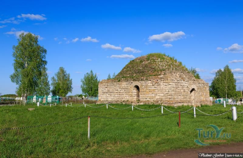 Мавзолей был построен в конце XIV века по распоряжению самого Тамерлана в дань уважения почитаемого в арабском мире имама Хусейн-бека. Хаджи-Хусейн-бек был направлен в башкирский край для распространения ислама. Всю жизнь он посвятил вере и служению народу. Успешной миссионерской деятельностью Хусейн-бек заслужил уважение башкир, титул кади и звание имама. Умер в возрасте 76 лет и был похоронен на небольшом холме, рядом с озером. Мавзолей представлял собой квадратное строение из крупных тесаных глыб известняка, увенчанное сферическим куполом. Толщина стен составляла 1,57 метра, высота здания - 4,2 метра; изнутри стены были оштукатурены.