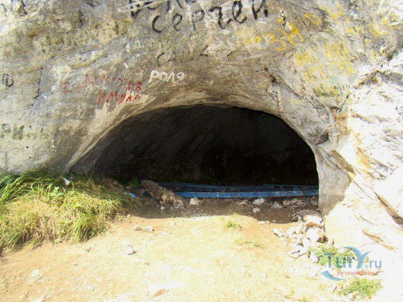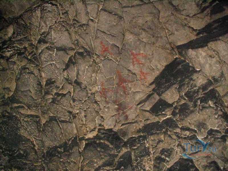 Старомурадымовская пещера природного парка Мурадымовское ущелье находится в 60 метрах восточнее пещеры Грот Голубиный. Официальное название Старомурадымовской пещеры "Мурадымовская 2". В ней были обнаружены наскальные рисунки древних людей, возраст которых превышает возраст рисунков легендарной Каповой пещеры. Старомурадымовская пещера имеет длину 210 метров. Пещера начинается коридором, ширина которого составляет 1,6 метра, а высота - 2,4 метра. Пройдя по нему 45 метров посетители попадают в галерею шириной до 4 метров и высотой до 24 метров. Преодолев подъем на уступ высотой 16 метров, можно попасть в систему расходящихся веером ходов длиной от 6 до 30 метров. Стены на всем протяжении пещеры покрыты слоем влажной копоти, поэтому у пещеры возникло второе название - "Копченая". В 60 метрах от входа в пещеру на правой стене расположены рисунки, которые были нанесены первобытными людьми красной охряной краской в конце эпохи мезолита, в начале неолита, и хранятся здесь уже 8 - 10 тысяч лет.