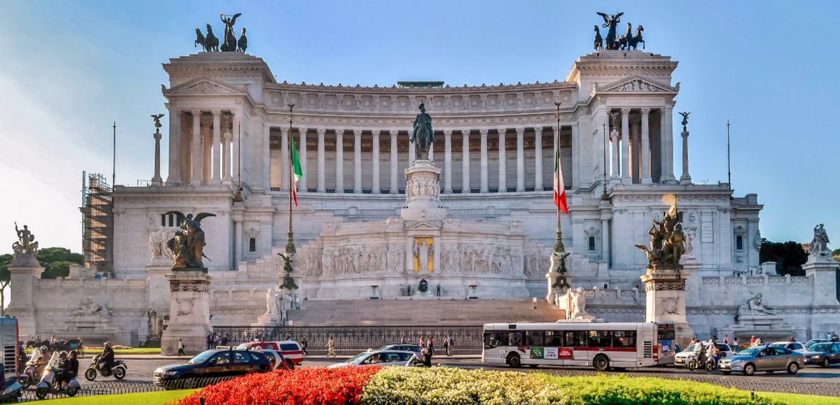 Белоснежный монументальный и помпезный АЛТАРЬ ОТЕЧЕСТВА на площади Венеции. Алтарь Отечества, он же - монумент объединителю Италии королю Виктору Эммануилу II. Во внутренних помещениях Алтаря находятся Музей Рисорджименто и Священная коллекция знамен. Алтарь служит прекрасным центральным ориентиром и маяком для туристов. Он важен хотя бы для того, чтобы понять, где они в данный момент находятся. В Алтарь Отечества можно войти внутрь и подняться на обзорную площадку. Сейчас туда ведет модерновый, в стеклянной трубе, лифт. Оттуда можно полюбоваться на бесконечность крыш Великого города, прорубленные проспекты, купола, башни, развалины.