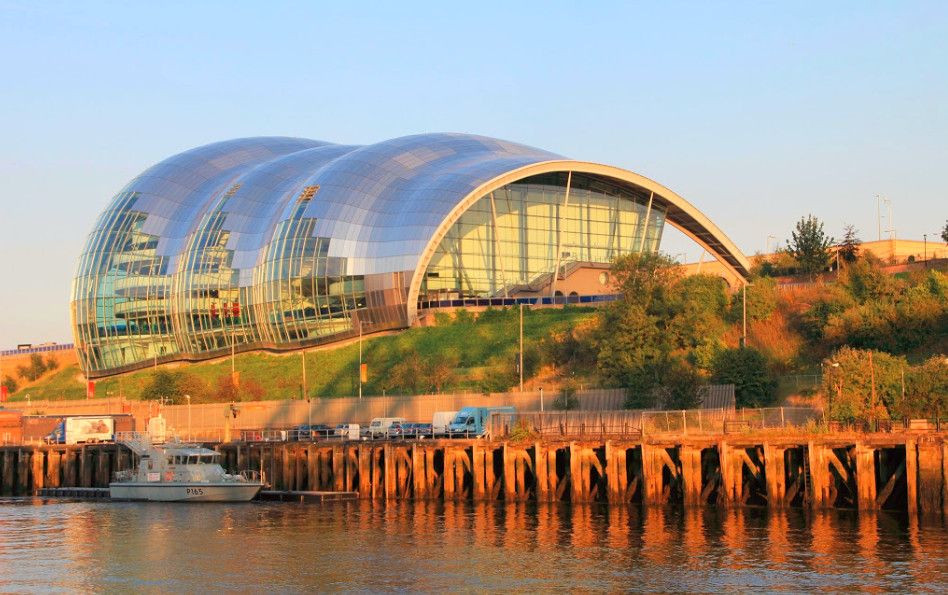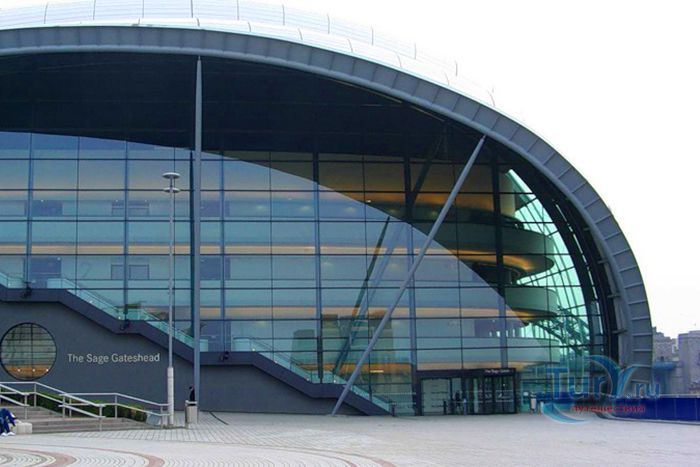 Сейдж Гейтсхед – уникальный центр музыкального образования, который расположен в Гейтсхеде, Англия. Он был построен 2003 году. Здание имеет очень причудливую форму, его сравнивают с большой гусеницей, или с облаком. В его строительстве участвовало очень много организаций, но основным проектантом считается Норман Фостер. Купол здания состоит из 3500 квадратных метров изогнутого стекла и 3043 панелей из нержавеющей стали. В Сейдже есть три основных зала – большой зал вместимостью 1700 мест, средний зал на 400 мест и холл, а вся остальная инфраструктура – бары, интернет кафе, библиотека и фонотека располагаются вокруг каждого зала с учётом акустических особенностей. Два концертных зала и холл – это три отдельных здания пирамидальной формы, которые изолированы в верхней части друг от друга, и соединены у своего основания. Это сделано с целью создания совершенной акустической структуры, которая отвечает требованиям лучших концертных залов мира. Вначале, жители Гейтсхеда не особо жаловали это строение из-за своей причудливой формы, но сейчас считают его одним из основных достопримечательностей своего города.