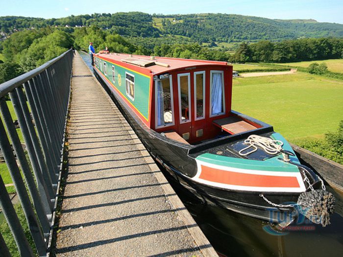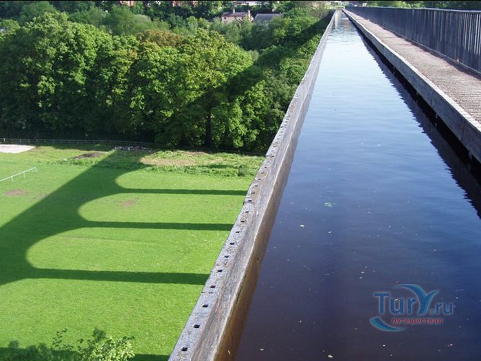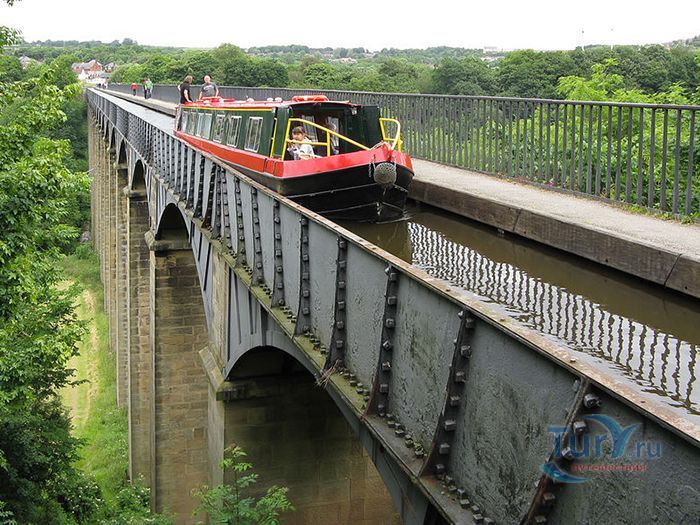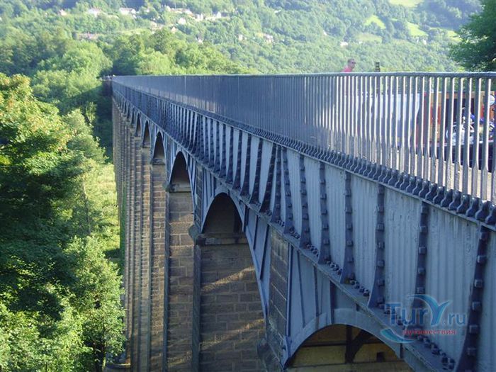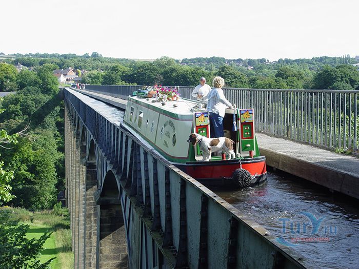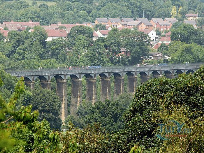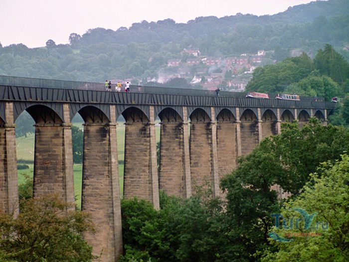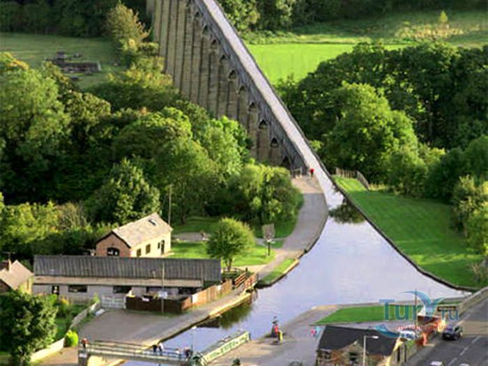 Акведук Понткисиллте - судоходный акведук протяжённостью 18 километров расположен на северо-востоке Уэльса, в графстве Рексем, Великобритания. Он проходит над долиной реки Ди и идеально вписывается в сложный ландшафт этой местности. По Акведуку проходит канал Лланголлен, располагается между деревнями Кевн-Маур и Вронкисиллте и является самым длинным и высоким акведуком в Великобритании. Высота канала в обеих сторон реки составляет 38 метров. Строительство акведука началось в 1795 году по проекту инженера Томаса Телфорда. Опоры строились полыми для уменьшения веса, строительный раствор состоял из извести, воды и бычьей крови. Официальное открытие этого, по словам Вальтера Скотта, произведения искусства состоялось в 1805 году. И с тех пор акведук является одним из наиболее загруженных участков канальной сети Великобритании, пропуская около 15 000 лодок в год. К своему 200 юбилею акведук ремонтировался. В 2009 году акведук Понткисиллте был внесен в список Всемирного наследия ЮНЕСКО. В настоящее время именно туристические путешествия по акведуку приобретают всё большую популярность. И это не удивительно, потому что находится он в очень живописной местности Рексема.