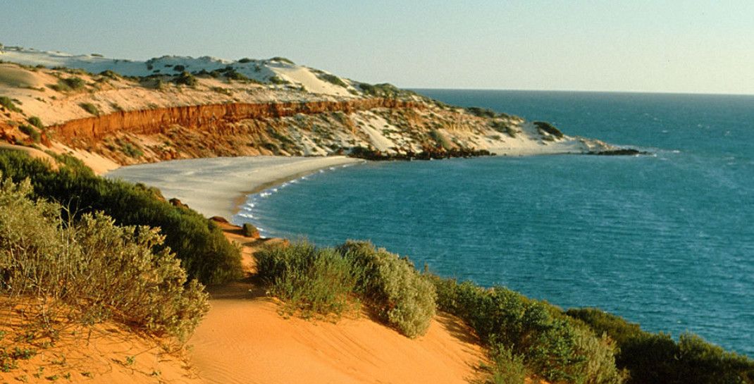 Залив Шарк расположен в северо-западной части австралийского штата Западная Австралия, в 650 км к северу от города Перт. Своё название залив Акулья бухта получил в конце XVII века, когда английский корабль под командованием Уильяма Дампира бросил якорь в здешних местах. По преданию, матросы корабля были очень голодны, от голода их спасла огромная акула, которая и пошла в пищу изголодавшимся морякам. Наиболее вероятно, своим названием бухта обязана многообразию различных видов акул, которые обитают в её водах. Здесь водятся более 10 видов акул, в том числе - китовые и тигровые. Помимо акул в этих местах обитают дельфины-бутылконосы и дюгони, которых в заливе насчитывается около 10 тысяч. В южной и самой мелководной части залива находится сверхсолёная мелководная бухта Хамелин-Пул - крупнейшее в мире местонахождение строматолитов - карбонатных образований, сформированных цианобактериальными матами. Старейшие ископаемые строматолиты имеют возраст около 3,7 миллиардов лет. Залив Шарк выглядит фантастически красиво, благодаря тому, что он словно изрезан на маленькие бухточки, полуострова и малые островки. С 1991 года он внесен в список Всемирного наследия ЮНЕСКО, ежегодно остров посещают более 120 тысяч туристов.