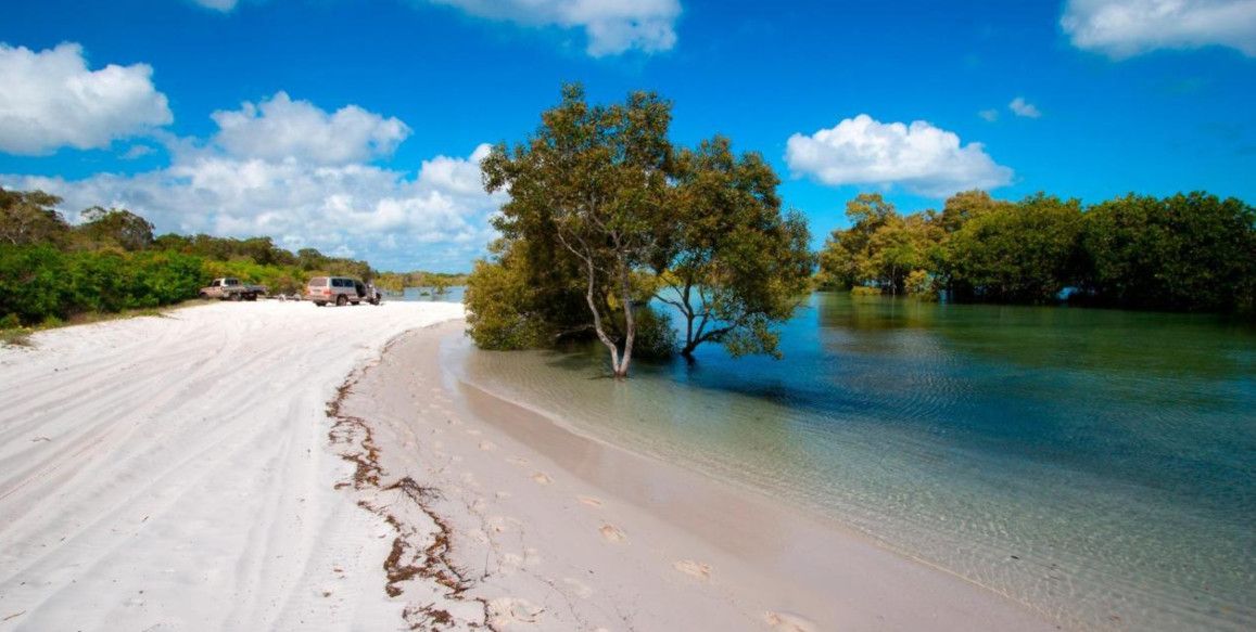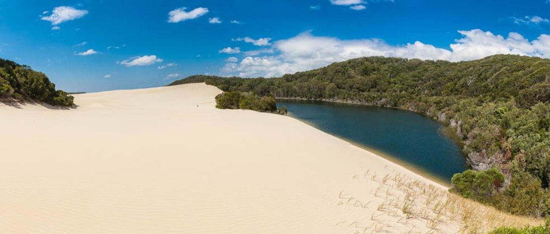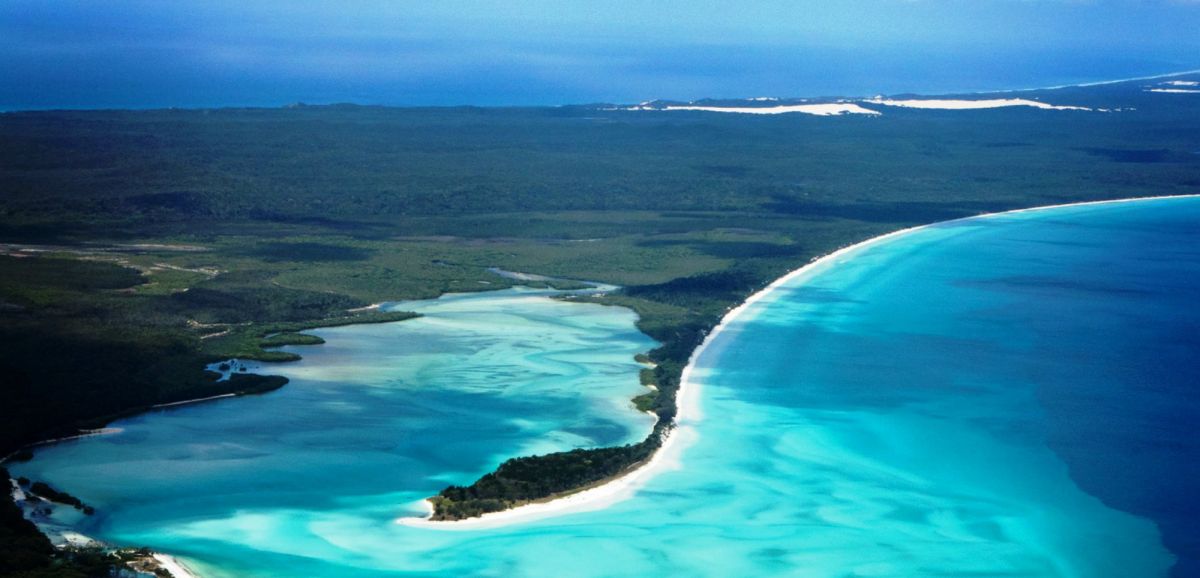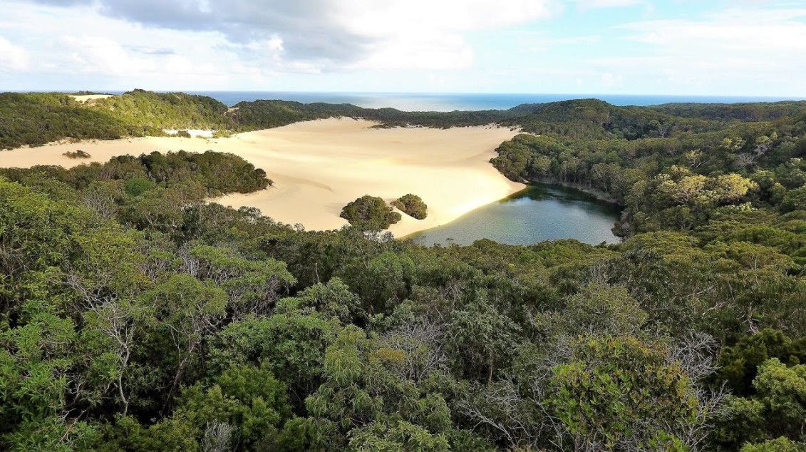 Остров Фрейзер - ёще один уникальный уголок Австралии, расположен в Коралловом море, относится к штату Квинсленд. Это самый большой песчаный остров в мире. Весь он состоит из песчаных разноцветных дюн, которые образовались около 400 тысяч лет назад и возвышаются до 240 метров. Остров славится пресноводными озёрами (Висячие озёра), их в этой местности насчитывается более сорока. Самое крупное из них Lake Boemingen площадью 200 га. В западной болотистой части острова произрастают мангровые леса. Восточное побережье украшает пляж из белоснежного песка длиной около 100 км. В северной части сохранились влажные экваториальные леса, практически в нетронутом виде. Животный мир острова тоже очень интересен. В мелких озёрах водятся пресноводные черепахи, на суше встречается дикая собака Динго. В 1992 остров Фрейзер включён в список Всемирного наследия ЮНЕСКО как неповторимый природный памятник. Туристы на острове могут отправиться в путешествие по тропическим лесам растущим из песка, посетить многочисленные и очень тёплые и красивые висячие озёра, либо исследовать обломки корабля "Махино", или просто наслаждаться мистикой разноцветного песка играющего на солнце.