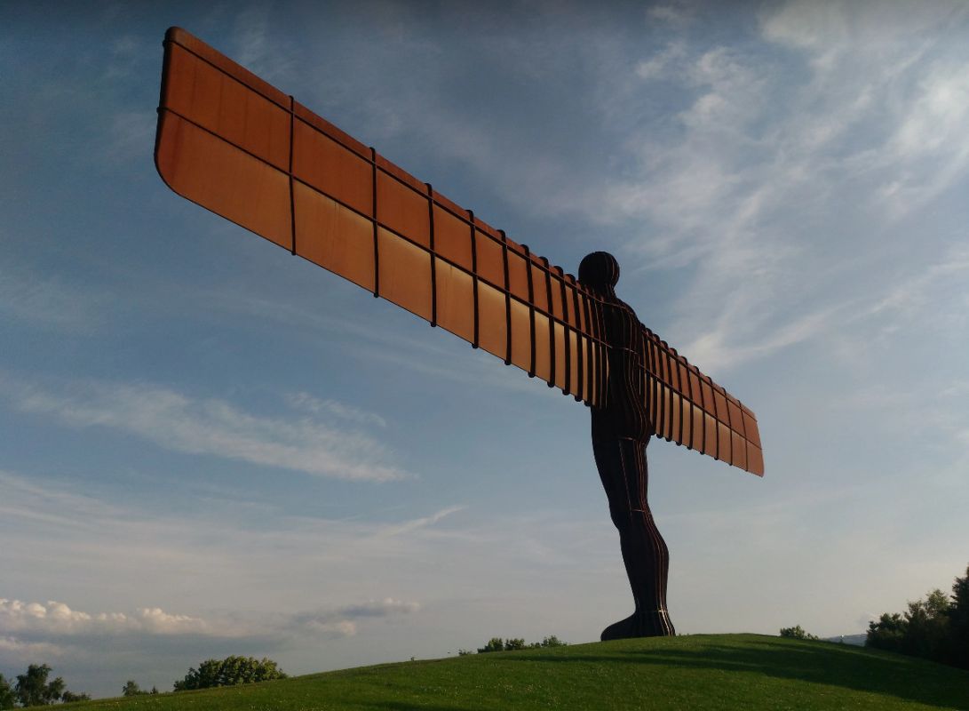 Ангел Севера – стальная современная скульптура, возведённая на северо-востоке Англии в Гейтсхеде. Скульптура представляет собой 20 метровую фигуру ангела весом 208 тонн. Стальное творение было создано в 1998 году скульптором Энтони Гормли. Это самое большое и необычное изваяние ангела в мире. Для создания иллюзии объятий, крылья ангела были наклонены под углом 3,5 градуса, а по своей форме они напоминают крылья самолёта с очень внушительным размахом 54 метра – это больше чем у Боинга 757. Ангел Севера расположен на холме, и должен выдерживать ветер свыше 160 км/ч. Для закрепления и свайного фундамента скульптуры было использовано 165 тонн бетона. Общая стоимость проекта составила почти 1 миллион фунтов стерлингов. Скульптура высотою в шести этажный дом, на фоне которой люди кажутся маленькими и очень беззащитными вызвала много споров в прессе. Сейчас её рассматривают как одну из главных достопримечательностей в Гейтсхеде, а также называют «Гейтсхедский маяк».