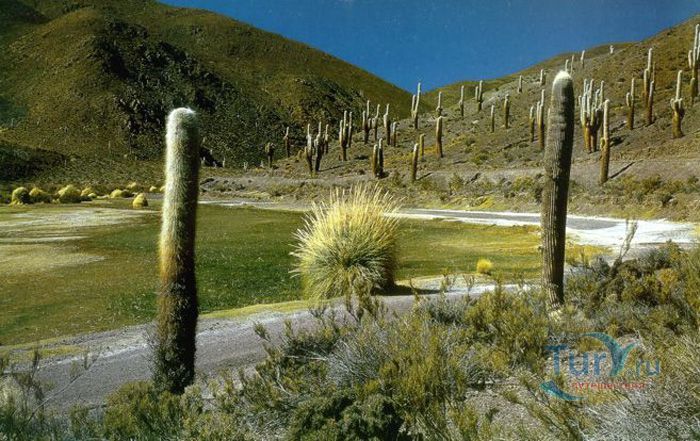 Национальный парк Лос-Кардонес – живописные кактусовые поля, расположены в 100 километрах от Сальты, на равнинах предгорья Анд, вблизи Качи, Аргентина. Парк находится на высоте 2700 - 5000 метров над уровнем моря. Общая территория парка составляет 65 тысяч гектаров. Парк был основан относительно недавно, в 1996 году. Лос-Кардонес назван в честь произрастающих здесь древних кактусов кордон. Основная флора парка состоит из 250-300 летних кактусов всевозможных видов, которые достигают трехметровой высоты, а также деревьев чурки. В давние времена по кактусовым полям проходила дорога, ведущая из империи Инкаико в Зачарованную долину. Многие даже сейчас считают, что кактусы-великаны это молчаливые хранители спокойствия гор и долин, защитники от чужеземцев. Когда-то эти кактусы были главным источником лесоматериалов в здешних краях. Из них производили балки, двери, оконные рамы. Считается, что кактусы являются индикаторами давних поселений - где жили люди там и росли кактусы. Сладкие черные семена кактусов были любимым лакомством «давних сладкоежек». В настоящее время колючие деревья Лос-Кардонес находятся под угрозой исчезновения, из-за нерационального использования их волокон. Поэтому в парке эти кактусы находятся под охраной. Животный мир парка очень богат и разнообразен. Здесь вы можете повстречать викуней, диких ослов, лис, попугаев, броненосцев, около 100 видов птиц, среди которых очень редкие - канастеро или топаколо. Заповедная зона представляет собой ценность с палеонтологической точки зрения. Здесь были найдены останки динозавров возрастом более 70 миллионов лет. Парк Лос-Кардонес станет ещё одной яркой и запоминающейся страницей ваших путешествий.