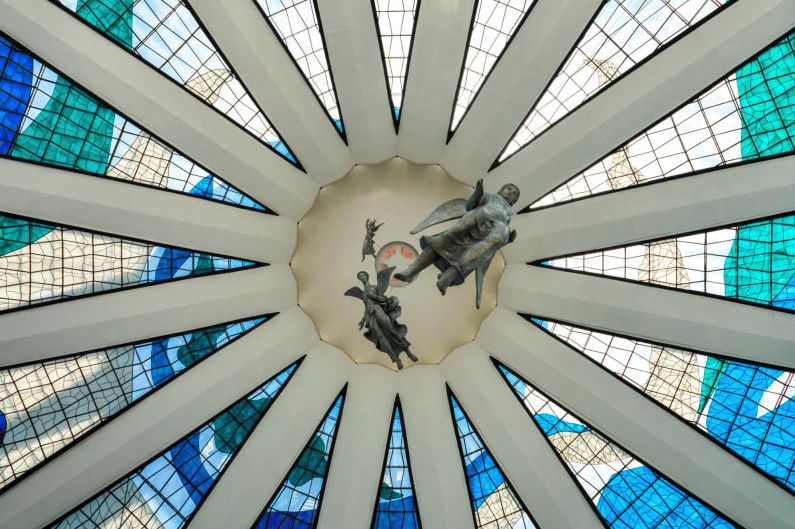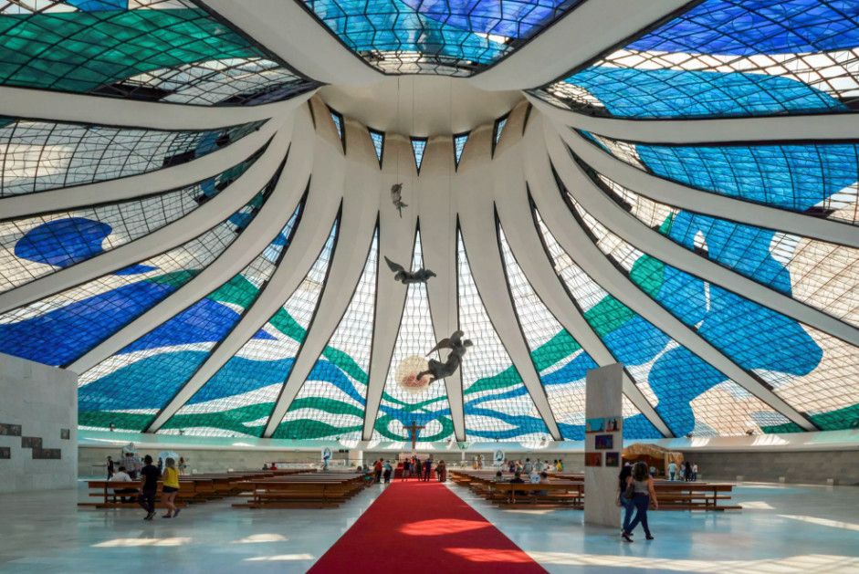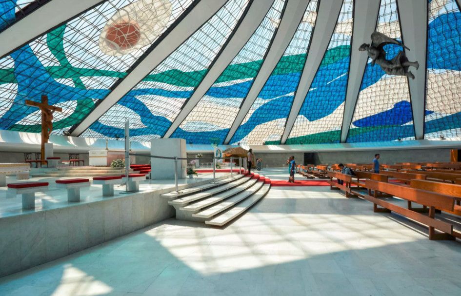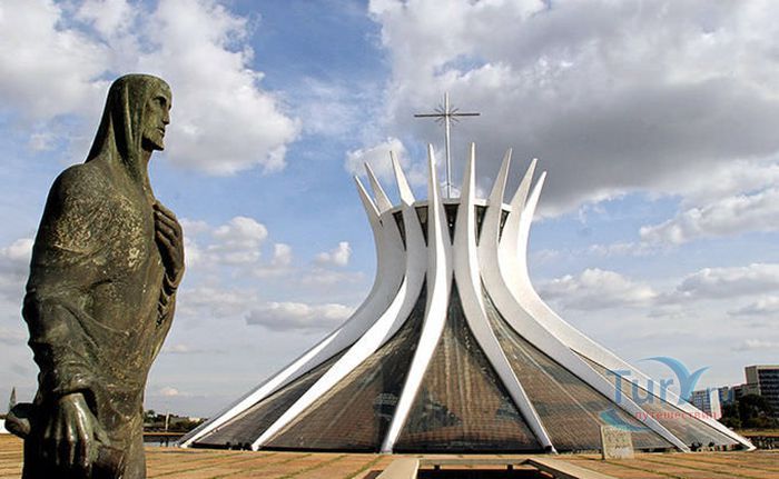 Кафедральный Собор Пресвятой Девы Марии Апаресидской - один из самых красивых католических соборов в мире. Он расположен в столице Бразилии городе Бразилиа. Собор построен в стиле модернизм в 1970 году. Автором проекта является известный архитектор Оскар Нимейер. Внешне этот собор имеет некоторые сходства с Ливерпульским метропольным собором. Однако, он обладает более утончёнными формами и особыми ребристыми конструкциями. Здание представляет собой 40-метровую гиперболоидную конструкцию, которая состоит из 16 изогнутых колонн, символизирующих руки, воздетые к небу. Всё пространство между колоннами закрыто витражами, поэтому создаётся атмосфера воздушности, лёгкости и простоты, а пространство внутри собора заполнено светом. Интересной особенностью является то, что к главному залу ведёт длинный тёмный коридор, что увеличивает визуальный эффект внутри главного помещения собора. За свой проект Оскар Нимейер получил притцкеровскую премию в 1988 году. В настоящее время Кафедральный Собор Пресвятой Девы Марии Апаресидской является действующим и принадлежит католической архиепархии Бразилиа.