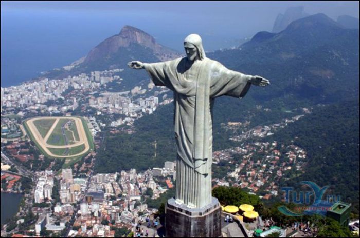 Гора Корковаду – визитная карточка Рио-де-Жанейро, расположена на территории Национального парка Тижука, Бразилия. С португальского языка название горы переводится «горбун». Большую известность она получила благодаря статуе Христу-Искупителю, которая расположена на вершине горы. На вершину горы можно попасть несколькими способами, один из них - это поездка на Корковаду по специальной железной дороге, которую построили в 1884 году швейцарские специалисты из Винтертура. Общая протяжённость железной дороги составляет 3,8 километров. Железная дорога имеет специальное зубчатое зацепление, так как подъём на гору очень крутой. Общая длительность пути составляет двадцать минут. Пропускная способность трёх поездов, каждый из которых состоит из двух вагонов - 540 пассажиров в час. С самой верхней станции железной дороги к подножью Статуи Христа ведут 223 ступеньки. На вершину горы можно подняться на лифте или эскалаторе. Наградой за этот труд будут восхитительные виды на: гору Сахарная голова, озеро Родригу ди Фрейташ, пляжи Копакабана, Ипанема и Леблон, стадион Маракана.