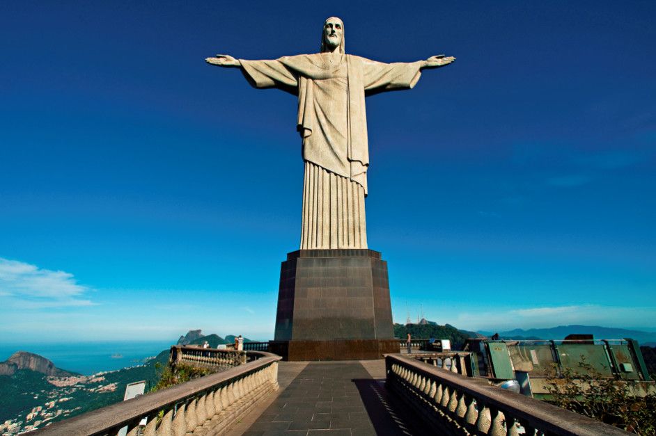 Идея этого сооружения зародилась в 1922 году, когда праздновалось столетие независимости Бразилии. Известный еженедельник объявил тогда конкурс проектов на лучший монумент - символ нации. Победитель, Эк-тор да Силва Коста, выдвинул идею статуи Христа, распростершего руки, обнимая весь город. Этот жест выражает сострадание и одновременно радостную гордость. Идея да Силвы была принята общественностью с восторгом еще и потому, что она перечеркнула прежний план возведения на горе Пан-ди-Асукар (Pan de Asugar) грандиозного памятника Христофору Колумбу. К делу тут же подключилась церковь, организовав по всей стране сбор пожертвований, дабы финансировать осуществление проекта. В итоге через девять лет статуя уже стояла на своем месте. Перед началом работ архитекторы, инженеры и скульпторы встретились в Париже, чтобы обсудить все технические проблемы установки статуи на вершине холма, где она открыта всем ветрам и подвержена другим метеорологическим влияниям. Затем французский скульптор Поль Ландовский начал моделировать голову и руки, в то время как инженеры занялись разработкой каркаса. Масштабы стоявшей перед ними задачи наглядно демонстрируются следующими статистическими параметрами: голова статуи весит 35,6 тонны, кисти рук - по 9,1 тонны каждая, а размах рук составляет 23 метра. Затем статуя была доставлена из Парижа в Рио-де-Жанейро и установлена на холме Корковаду. 12 октября 1931 года состоялось ее первое торжественное открытие и освящение, к этому дню была смонтирована и осветительная установка. В 1965 году папа Павел VI повторил церемонию освящения, по этому случаю была обновлена и осветительная установка. Еще одно большое торжество проходило здесь в присутствии папы Иоанна Павла II 12 октября 1981 года, когда отмечалось пятидесятилетие самой статуи. Построенная в 1885 году линия трамвая ведет теперь почти на вершину холма: конечная остановка находится всего в сорока метрах под статуей. От нее надо подняться по 220 ступеням лестницы к постаменту, на котором расположена смотровая площадка. Отсюда хорошо видны протянувшиеся по правую руку пляжи Копакабана и Ипанема, а слева гигантская чаша "Мараканы", крупнейшего в мире стадиона, и международный аэропорт. Со стороны моря возвышается неповторимый силуэт горы Пан-ди-Асукар. Статуя Христа Спасителя является национальным достоянием и национальной бразильской святыней, символом города, а широко раскинутые руки выражают ту теплоту, с которой жители Бразилии встречают гостей страны.