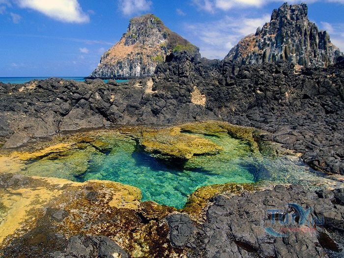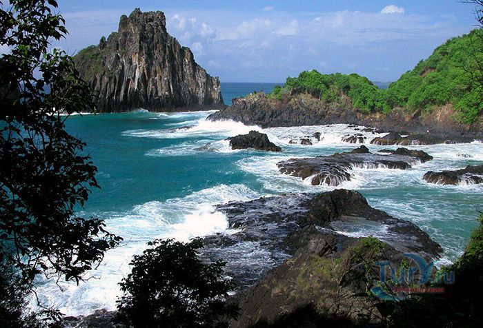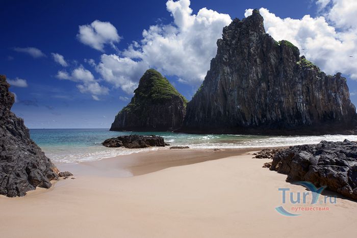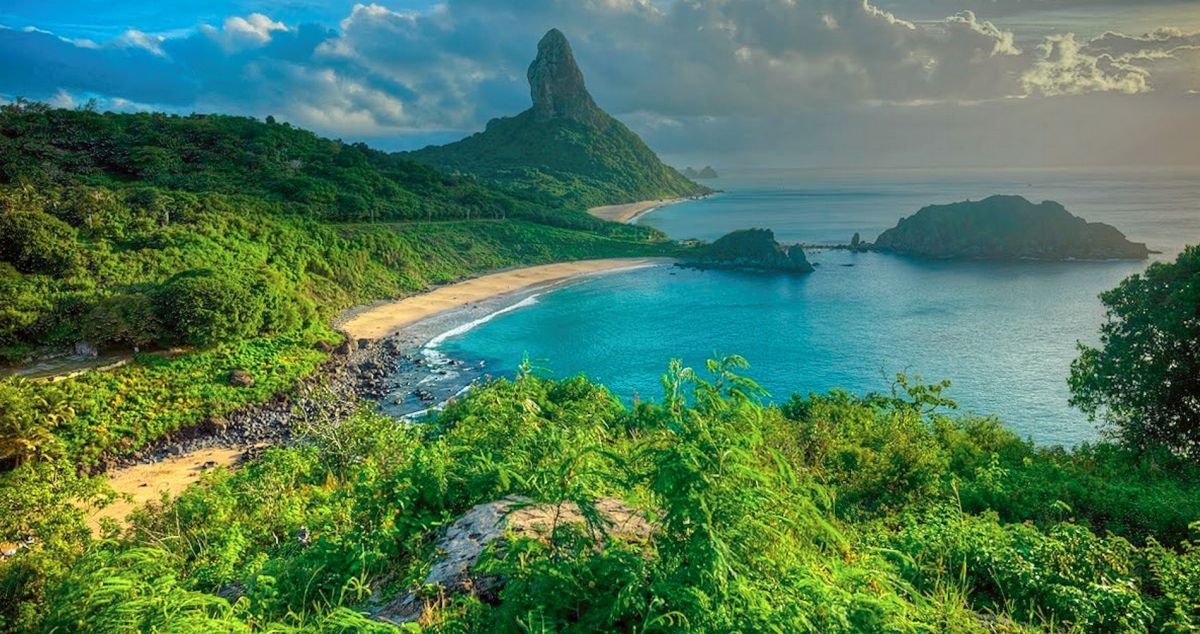 Фернанду-ди-Норонья – красивый архипелаг вулканического происхождения, расположен в 354 километрах от северо-восточного побережья Бразилии, относится к штату Пернамбуку. Архипелаг состоит из 21 острова, а также маленьких островков и скал. Общая площадь архипелага составляет 26 квадратных километров. Самый большой остров площадью 17 квадратных километров, его самая высокая точка достигает 756 метров над уровнем моря. Информация относительно того, кто открыл этот архипелаг, носит несколько противоречивый характер. Архипелаг был открыт в 1501 году либо в 1502 году, португальской экспедицией Лемуша либо Коэльу, в которой принимал участие Америго Веспуччи. Назван он в честь богатого спонсора экспедиции Фернанду де Нороньи. Очень красивые пейзажи, дикая природа, золотистые песчаные пляжи, а также богатый мир подводной фауны привлекают сюда множество любителей дайвинга и сёрфинга. Остров славиться большим количеством эндемичных видов животных. В чистейших прибрежных водах водятся акулы, дельфины, мурены, скаты и многие другие обитатели подводного мира. В 2001 году архипелаг Фернанду-ди-Норонья был включён в список Всемирного наследия ЮНЕСКО.