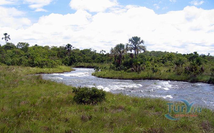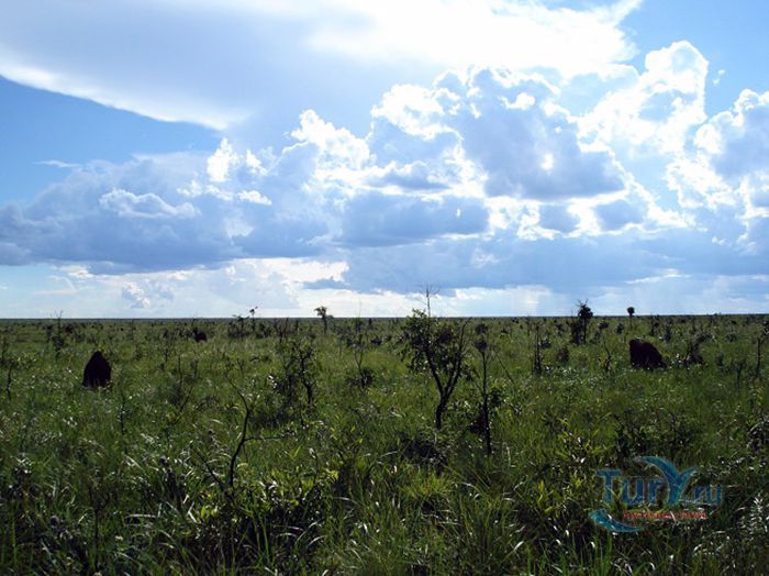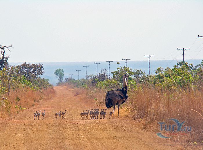 Национальный парк Эмас расположен на территории двух бразильских штатов Гояс и Мату-Гросу-ду-Сул, в Центрально-Западном регионе Бразилии. Национальный парк Эмас, также как Национальный парк Шапада-дус-Веадейрус, относится к зоне лесистых саванн. Преобладающий климат тропический - лето влажное и умеренно жаркое, а зима холодная. Во время изменения климата, cаванна Эмаса помогла выжить многим видам живых организмов. В настоящее время в заповеднике удивительно богатая флора и фауна. По берегам рек Эмаса тянутся сухие леса, а по всей округе парка произрастает высокая трава и торчат красные термитники. На возвышенных участках парка растёт самая высокая в мире пальма Orbignia, круглые кроны которой достигают до 75 метров в высоту. Среди представителей животного мира здесь можно встретить большого муравьеда, гривастого волка и броненосца, крупных лисиц, бразильских дикобразов, ягуаров, кустарниковых собак, оцелотов и тамаринов и многих других. В 2001 году пак был внесён в список Всемирного наследия ЮНЕСКО. Во всемирном фонде дикой природы утверждается, что лесистая саванна – «серраду» является самой биологически разнообразной саванной в мире.