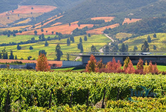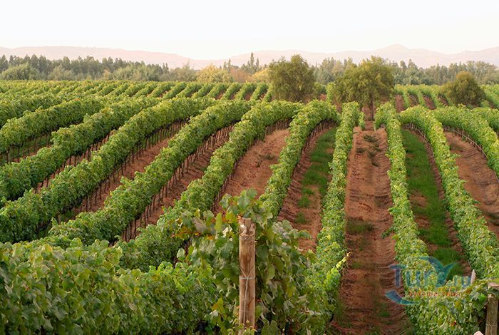 Виноградная долина Кольчагуа – известный регион выращивания винограда и виноделия в Чили. Виноградники Кольчагуа расположены в горной долине Рапель, в административном регионе Санта-Крус, Чили. Общая площадь виноградников составляет 22 тысячи гектаров. Зона виноделия географически расположена в центральной части Чили, где климат идеально подходит для занятия виноделием. Благодаря постоянному смешиванию воздушных потоков и разнице между дневной и ночной температурой, виноград созревает медленнее, чем в других местах, и способен концентрировать в себе больше ароматических веществ. Кольчагуа славится производством лучших чилийских красных вин. Здесь производят всемирно известные вина - Каберне Совиньон, Сира, Мальбек, Мурведер, Кармедер. Если вы пожелаете совершить экскурсию к виноградникам долины Кольчагуа, вам обязательно предложат посетить несколько виноделен, продегустировать вина, организуют обед в ресторанчике на самой винодельне. Стандартный экскурсионный тур предусматривает посещение двух винодельческих фирм и музея Кольчагуа. Искренним ценителям виноградного мастерства, предложат совершить путешествие к виноградникам с помощью железной дороги. Поездом служит отреставрированный паровоз, образца 1923 года, который называют «винным поездом». Он отправляется в путь с железнодорожного вокзала города Сан-Фернандо, а само путешествие длится около 1 часа 40 минут. Пока паровоз объезжает долину, пассажиры могут обозревать основные виноградники района и наслаждаться дегустацией вин в вагоне ресторане. По прибытию на станцию Санта-Крус туристов машинами доставляют в винодельческое хозяйство, где будет показан процесс производства вина и предложено попробовать лучшие вина долины Кольчагуа .