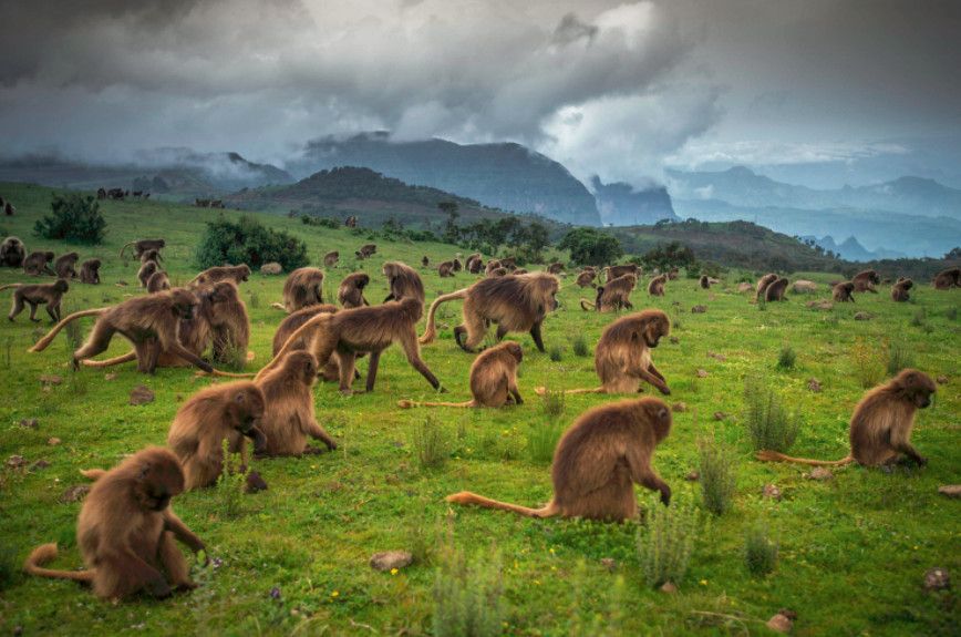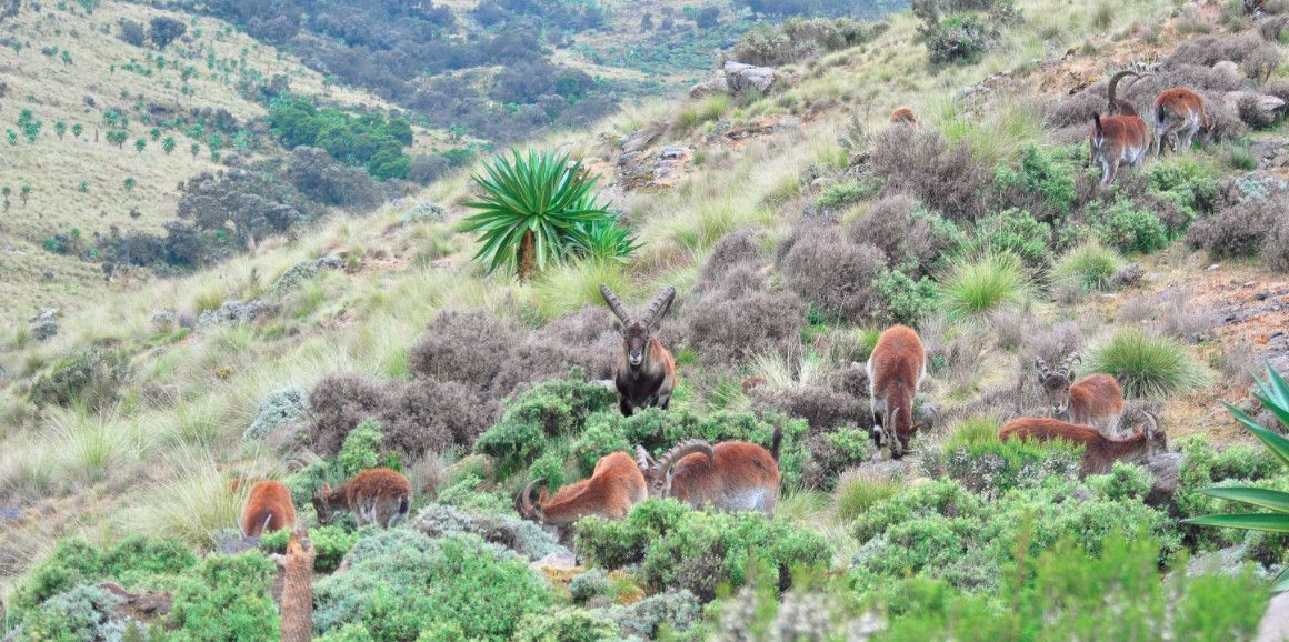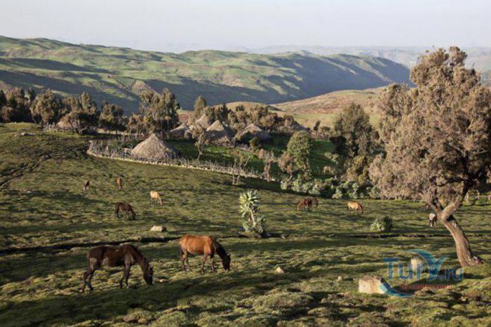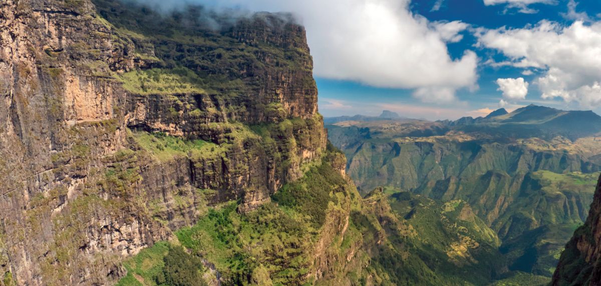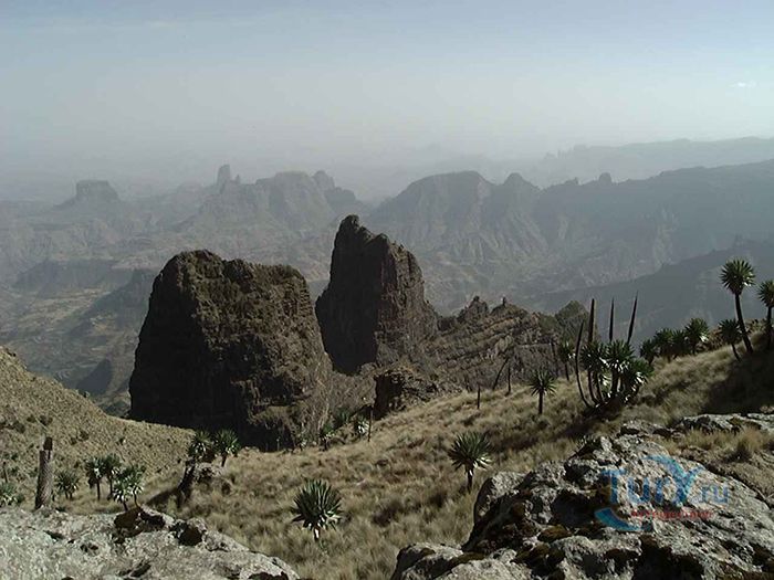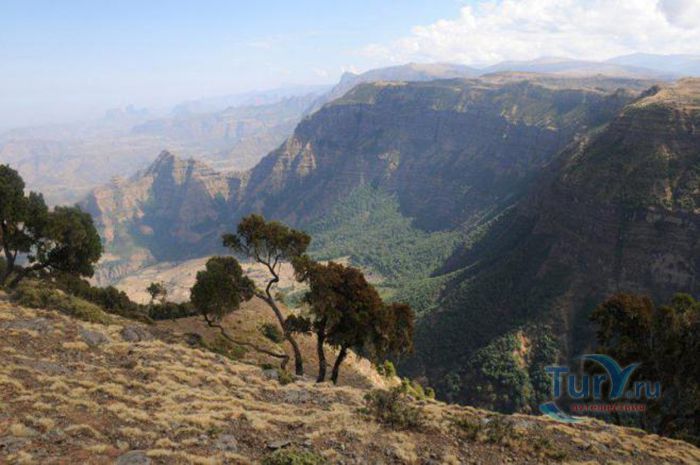 Национальный парк Горы Симиен расположен в регионе Ахмара, Эфиопия. Эфиопское плато являлось сейсмически активной зоной, а также было подвержено ветровой и водной эрозии на протяжении многих веков. В результате длительных геологических преобразований появились удивительные горы с зазубренными вершинами, глубокими ущельями и красивыми долинами – горы Симиен. С 1969 года здесь был основан Национальный парк Горы Симиен. Общая площадь парка составляет 22 500 гектар. На территории парка находится вершина горы Рас Дашен высотою 4620 метров - самая высокая точка в Эфиопии. Парк славится очень красивыми горными видами и уникальными представителями животного мира. Здесь водятся нубийский горный козёл, эфиопский шакал, леопард, сервал и разнообразные хищные птицы. Среди редчайших представителей своих видов, водятся эфиопский волк и обезьяна Гелада. В парке преобладают горные пустыни, полупустыни, саванны, а также афро-альпийская растительность с древовидным вереском. Для путешествия по Национальному парку Горы Симиен рекомендуется обязательно брать опытных проводников.