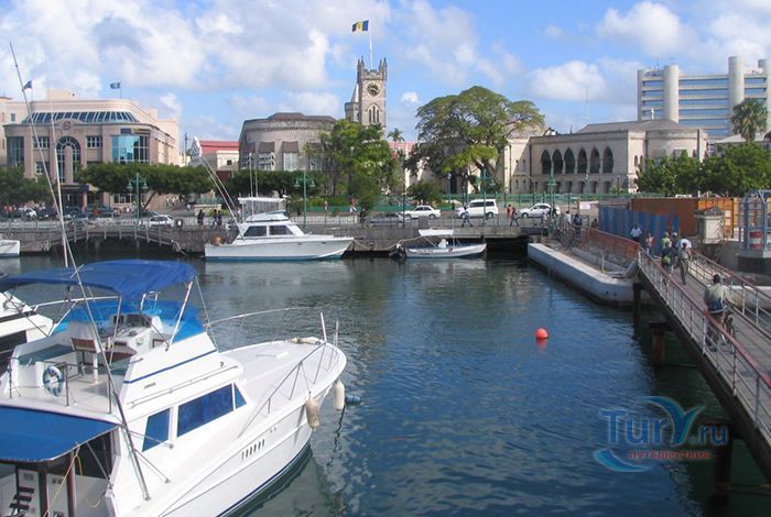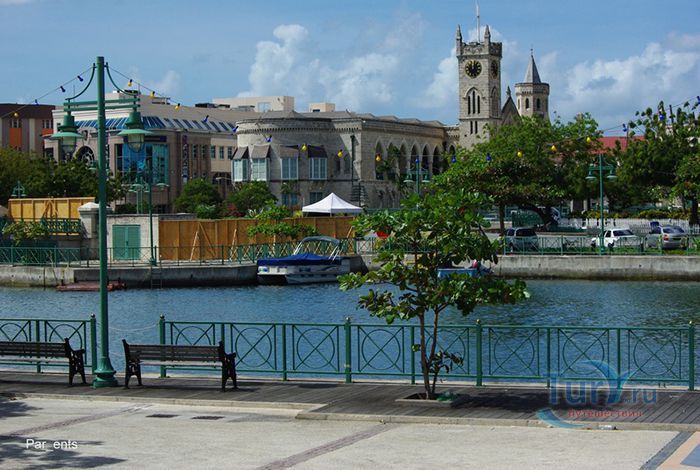 Исторический центр Бриджтауна и Гарнизон – старая часть столицы Барбадоса, которая является образцом британской колониальной архитектуры на островах Карибского моря. Исторический район столицы хорошо сохранился, несмотря на то, что строился в период с 17 по 19 столетия. Бриджтаун расположен на двух берегах реки Конституция и название города в переводе звучит как Город-мост. Река разделяет исторический центр на одном берегу которого находится Площадь Национальных Героев, а на другом Площадь Независимости. Второе название Площади Национальных Героев – Трафальгарская Площадь. Местное население рассказывает, что она является точной копией Трафальгарской Площади в Лондоне. Вокруг обеих площадей сконцентрировано большое количество зданий колониальной эпохи. На Площади Национальных Героев находится памятник Нельсону, стоит здание парламента с часовой башней, построенное в 1871, собор Святого Михаила и здание синагоги, построенное в 17 веке. На другой стороне реки, на Площади Независимости вы можете увидеть памятник первому премьер-министру страны Эрролу Бэроу и Арку Независимости. Исторической составляющей города является военный городок Гарнизона Святой Анны, находящийся в пригороде Бриджтауна. На территории Гарнизона находится Музей Барбадоса, в котором экспонируются редчайшие материалы истории острова и всей Вест-Индии. В Гарнизоне нужно обратить внимание на форт Сент-Энн, построенный в 1705 году, башню Мейн-Гард, постройки 1803 года, здания казарм и другие интересные объекты. Гарнизон служил местом дислокации британской армии, на его территории выставлено большое количество артиллерийских орудий, самое старое из которых отлили в 1620 году. Гарнизон Святой Анны входит в список всемирного наследия ЮНЕСКО. Город Бриджтаун слывет чистым, комфортным городком с множеством разноцветных домиков. В Бриджтауне много хороших отелей, ресторанов и увеселительных заведений.