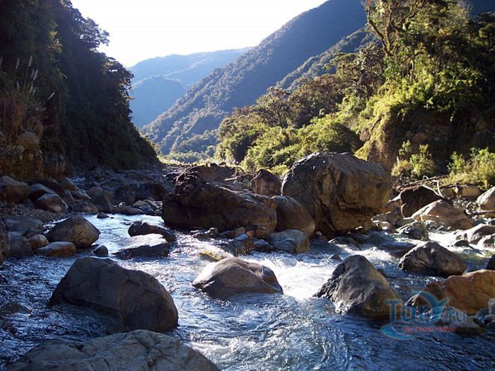 Национальный парк Рио-Абисео – заповедник живой природы, расположен в регионе Сан-Мартин, Перу. Рио-Абисео занимает территорию размером 2745 квадратных километров на восточном склоне Перуанских Анд между реками Мараньон и Уальяга. Заповедник был основан в 1983 году с целью сохранения многообразия видов растительного и животного мира, в том числе и эндемических. Национальный парк Рио-Абисео расположен на высоте от 350 до 4200 метров над уровнем моря и насчитывает 7 климатических зон, каждая из которых отличается своим температурным режимом, влажностью, почвой, флорой и фауной. В Рио-Абисео произрастает около 5000 видов растений. В парке водятся такие животные, как андская пенелопа, рыжий ревун, ягуар, королевский гриф, очковый медведь, белолобый капуцин, горная пака, желтохвостая обезьяна и многие другие. Среди птиц обитают: желтобровый туканет, суринамский амазон, гриф-идейка, красноглазый нырок, поганка Тачановского, королевский гриф и другие редкие виды пернатых. На территории парка было обнаружено и исследовано 36 археологических участков с древними руинами, подтверждающими существования здесь доинковской индейской цивилизации. Одним из таких мест является Гран-Пахатен – руины 26 каменных сооружений украшенные настенной мозаикой и надписями. Эти руины расположены на вершине холма, на площадке размером 2 гектара и датируются началом первого тысячелетия нашей эры. В 1990 году Национальный парк Рио-Абисео был причислен к объектам Всемирного наследия ЮНЕСКО.