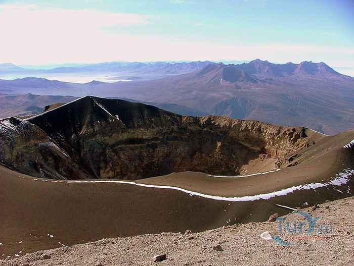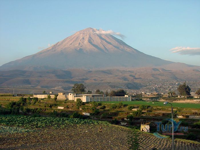 Вулкан Эль-Мисти – действующий вулкан, который расположен в Западной Кордильере Анд, Перу. Высота вулкана составляет 5822 метра над уровнем моря. Конус вулкана поднимается над горным плато на более чем 3500 метров вверх и имеет окружность диаметром 10 километров. Вулкан Эль-Мисти насчитывает три кратера, самый большой из них имеет диаметр 130 метров и глубину 140 метров. Эль-Мисти относится к стратовулканам, для которых характерны периодические взрывные извержения лавы, которая быстро застывает, не успевая далеко распространиться. За последнее сто лет вулкан извергался пять раз, последний раз был зафиксирован в 1985 году. Самое сильное из известных нам извержений произошло в 16 веке. Жители города Арекипы, расположенного в 17 километрах на юго-запад от разъярённого вулкана вынуждены были покинуть свои жилища. С мая по сентябрь, пока верхушка вулкана Эль-Мисти не засыпана снегом, на вершину вулкана проводятся туристические восхождения. Для путешествия по вулкану нужно потратить два дня и одну ночь, которую придется провести в палатке при температуре воздуха ниже нуля градусов по Цельсию. Самые отважные и терпеливые туристы могут посетить один из кратеров вулкана.