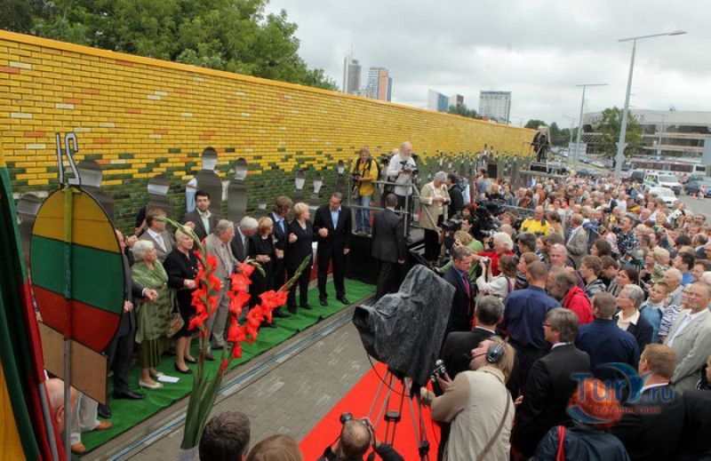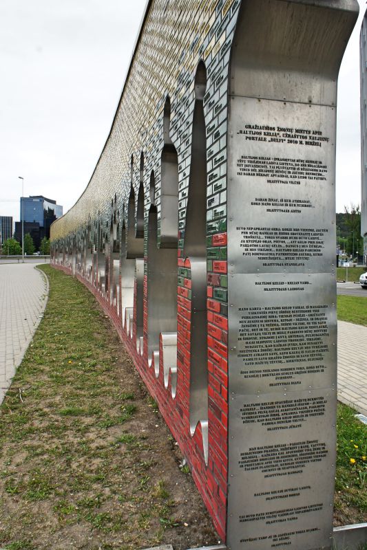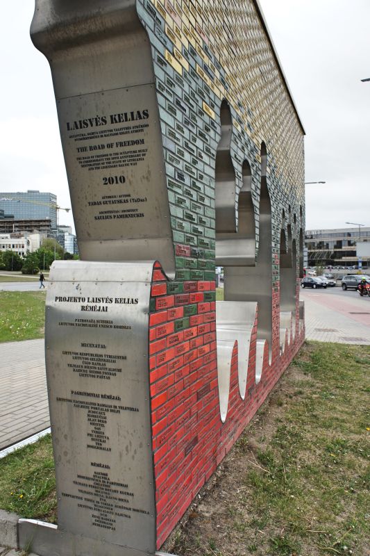 Скульптура Дорога Свободы была торжественно открыта в Вильнюсе 23 августа 2010 года, в день 21-й годовщины мирной акции Балтийский путь, состоявшейся 23 августа 1989 года. В этот день жители Литвы, Латвии и Эстонии выстроились в живую цепь длиной почти в 600 километров, соединившую Таллин, Ригу и Вильнюс, продемонстрировав таким образом единство в стремлении к независимости и суверенитету стран Прибалтики. В 2009 году ЮНЕСКО признала эту акцию феноменом ненасильственного сопротивления и включила документальные материалы о ней в международный реестр программы "Память мира". Автором идеи создания памятника и проекта скульптуры Дорога Свободы является известный литовский скульптор Тадас Гутаускас. Сооружение представляет собой кирпичную стену длиной 60 метров с вырезанными в ней силуэтами людей, взявшихся за руки, на её создание было использовано 20000 кирпичей жёлтого, зелёного и красного цветов (цвета флага Литвы). Проект приобрёл общенациональное признание, на его реализацию были внесены значительные денежные пожертвования общественными организациями, фондами, частными компаниями, известными личностями и простыми гражданами Литвы. Деньги на создание скульптуры собирались посредством продажи именных кирпичей - каждый желающий мог за 25 литов (семейный кирпич стоил в 2 раза дороже) приобрести кирпич с выгравированными на нём своими именем и фамилией, став таким образом "частью" Дороги Свободы. В стене есть также кирпичи с именами жителей Арабских Эмиратов, Канады, Норвегии, США и многих других стран. Скульптура Дорога Свободы, по словам её автора Тадаса Гутаускаса, - это память о борьбе за независимость и свободу, символ единства нации, призыв к будущим поколениям не забывать идеи единства, которые помогли Литве завоевать свободу.