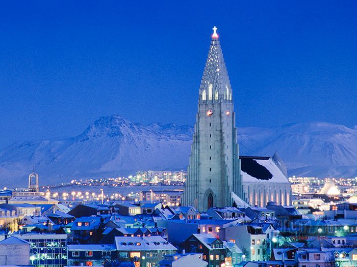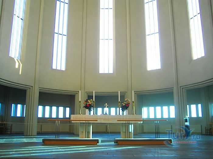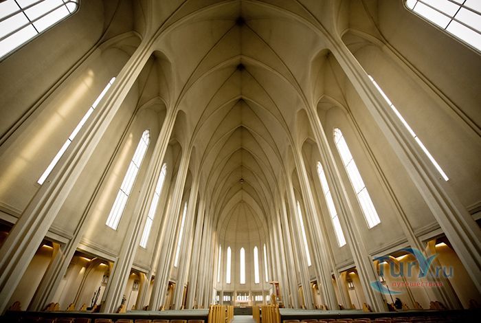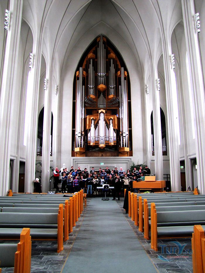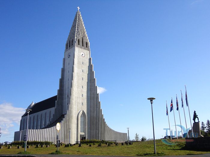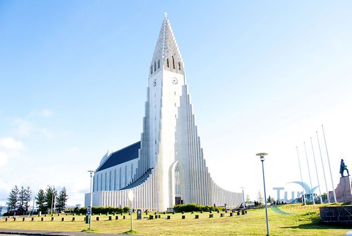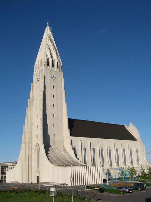 Хатльгримскиркья – лютеранская церковь в Рейкьявике, самая высокая церковь в Исландии. Хатльгримскиркья строилась 38 лет в период с 1945 по 1986 год. Сам проект был разработан за 8 лет до начала строительства известным исландским архитектором Гудйоуном Самуэльссоном. Архитектор попытался придать церкви форму, похожую на вулкан, который в символическом восприятии находится в активном состоянии и извергает лаву в небеса. Собор строился постепенно и без спешки - первыми были возведены хоры и крипта, а позже башня с крыльями. Церковь Хатльгримскиркья считается одной из достопримечательностей города, она расположен в его центре и названа в честь исландского поэта и лютеранского проповедника Хадльгримура Петурссона. Величественное здание оборудовано 15 метровым механическим органом с 5275 трубами, общим весом 25 тонн. Внутреннее убранство достаточно скромное и не выделяется, какими либо декорациями, но как замечают посетители, сама высота купола дает ощущение воздушности и свободы. Собор может вместить 1200 человек и кроме богослужений используется для проведения поэтических вечеров, концертов и театрализованных представлений. Вечера органной музыки проходят здесь каждую неделю. В соборе хранится первая исландская Библия, изданная в 1584 году. На площади перед входом в собор находится статуя исландского мореплавателя Лейфа Эрриксона, который был первооткрывателем Америки еще за пять столетий до Колумба. Статуя Лейфа Эрриксона была подарена Соединенными Штатами Америки в честь тысячелетия исландского парламента. На крыше 73 метрового собора есть обзорный площадка, с которой открывается прекрасная панорама на дома и кварталы Рейкьявика, окруженного океаном с одной стороны и горами с другой.