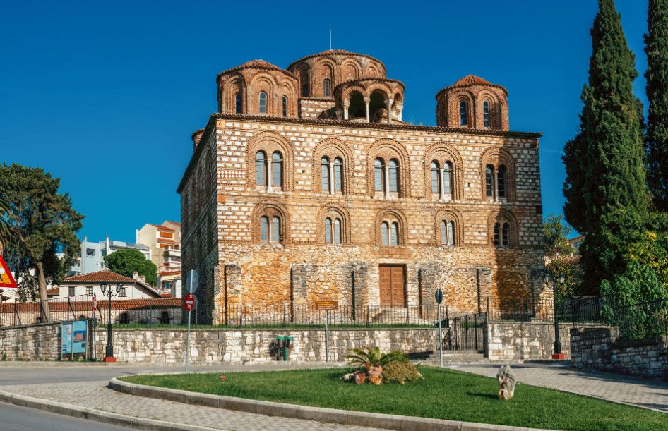Это внушительная византийская церковь, посвященная Благовещению Пресвятой Богородицы. Она была построена в конце XIII века Никифором I Комниным Дукасом, правителем Эпира. Размеры церкви действительно впечатляют: длина передней стороны - 22 метра, боковой - 20; высота - свыше 20 метров. Но известна она благодаря другому - необычному методу, с помощью которого выполнены архитектурные опоры. Главный купол поддерживается необычными колоннами (пилястрами) с выступами-кронштейнами, что производит впечатление непрочности. Этот купол украшен великолепным мозаичным изображением Христа Вседержителя, превосходящим по своей выразительности фрески XVI и XVII веков в алтаре и нефе.
