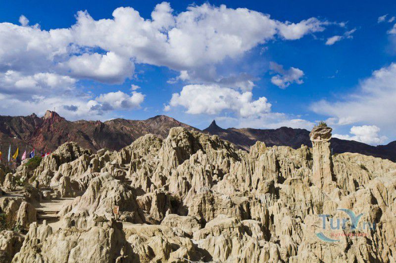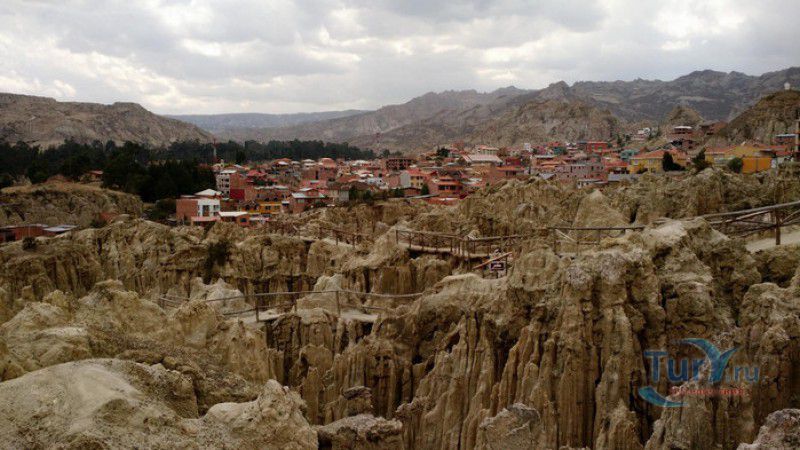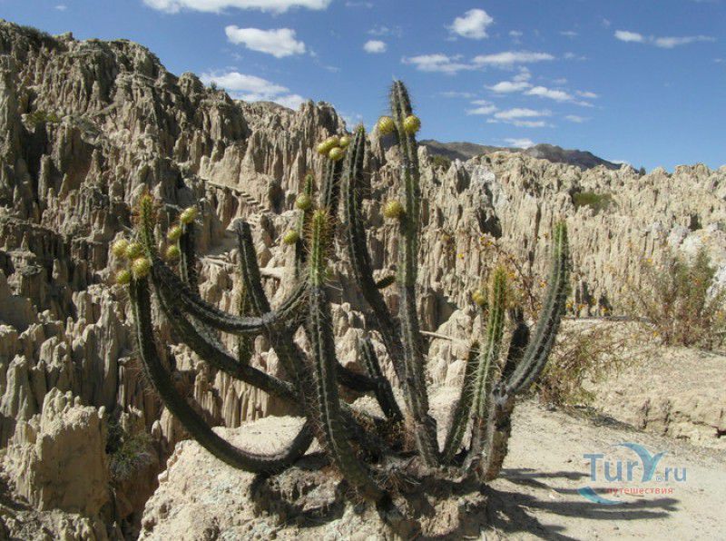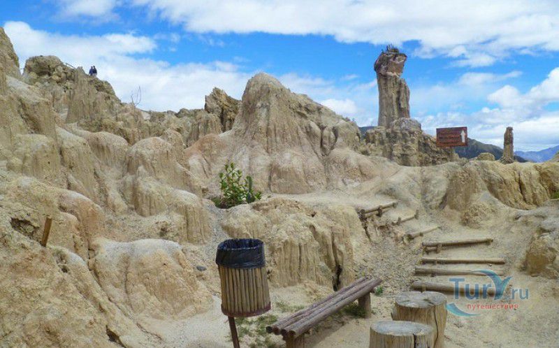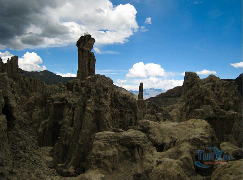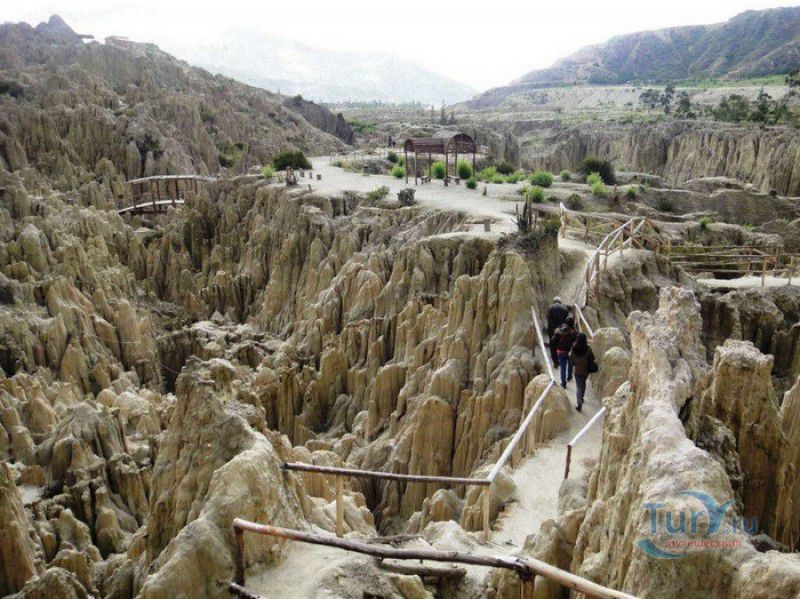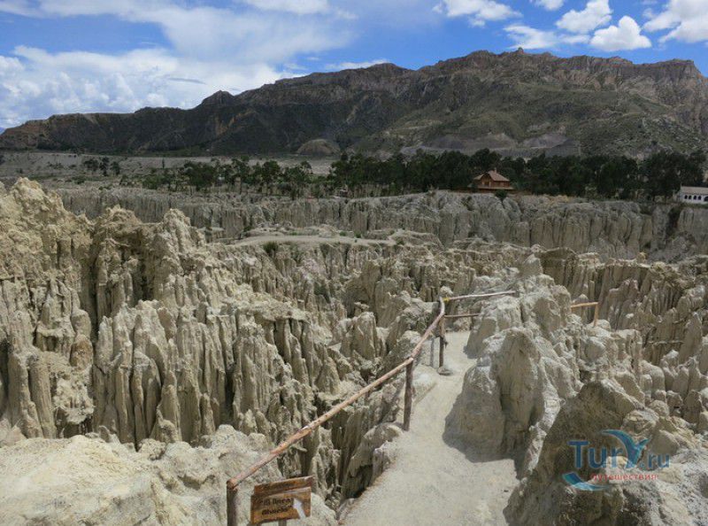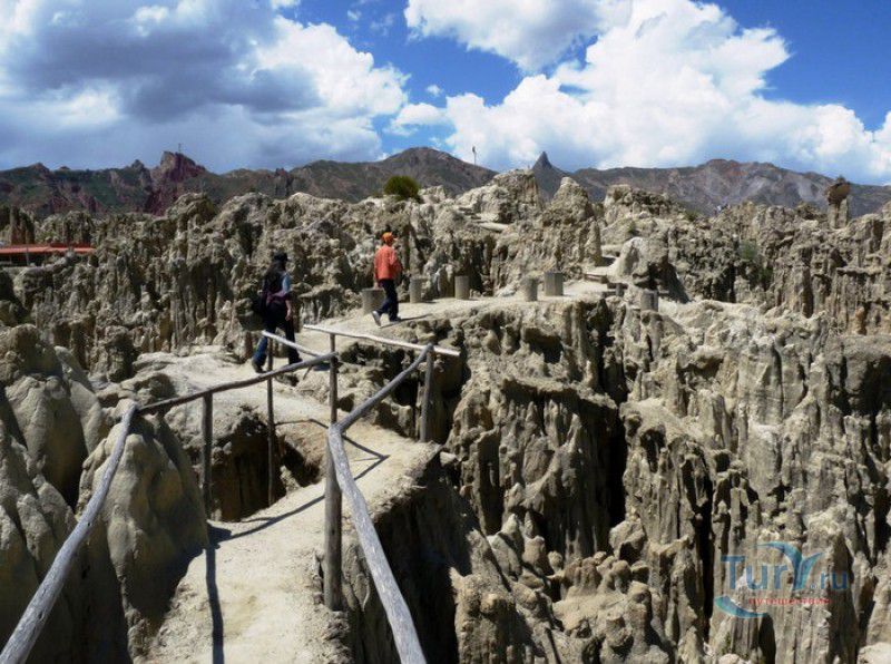 Лунная Долина расположена в Боливии, в 11 км от центра города Ла-Пас. Геологическое "чудо природы", представляющее собой лабиринт каньонов и гигантских острых шпилей, образовалось в результате эрозии - на протяжении веков вода и ветер вытачивали в глинистой горной породе сюрреалистические пейзажи. Своё название Лунная долина получила с лёгкой руки американского астронавта Нила Армстронга - первого человека, ступившего на Луну. Местные жители утверждают, что, увидев скальные конусы, кратеры и впадины, легендарный астронавт сравнил причудливый рельеф местности с поверхностью Луны. Благодаря различному минеральному составу горной породы, скалистые структуры отличаются разнообразием оттенков - от бежевого до красноватого и тёмно-фиолетового. В долине растут несколько видов кактусов, в том числе San Pedro, содержащий сильный галлюциноген мескалин. Из животных здесь обитают несколько видов ящериц и странный зверёк - горная вискаша, грызун семейства шиншилловых, внешне напоминающий кролика, но с беличьим хвостом. Для посетителей оборудованы пешеходные маршруты по Лунной долине, в некоторых местах тропа довольно узкая и обрывистая, есть подвесные мостики и крутые лестницы. С обзорной площадки Точка Дьявола открывается панорамный вид на город и живописные окрестности. На входе в Лунную долину есть небольшой туристический информационный центр, желающие остаться на ночь могут остановиться в расположенном неподалёку кемпинге.