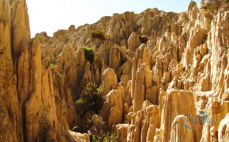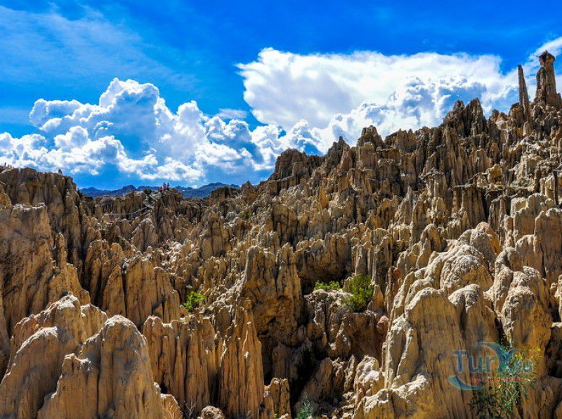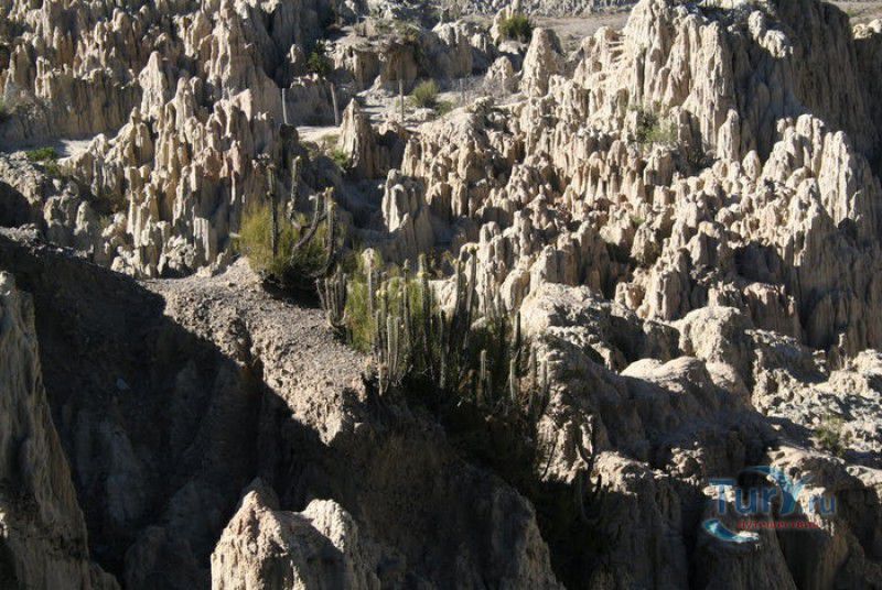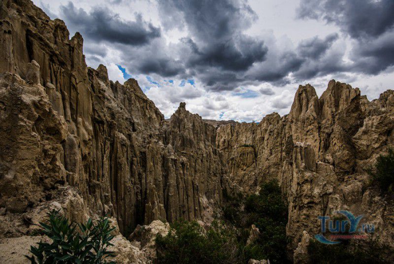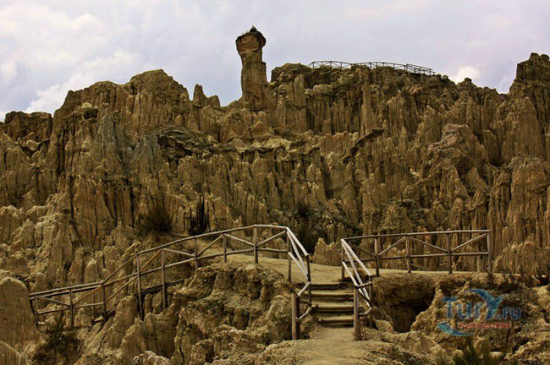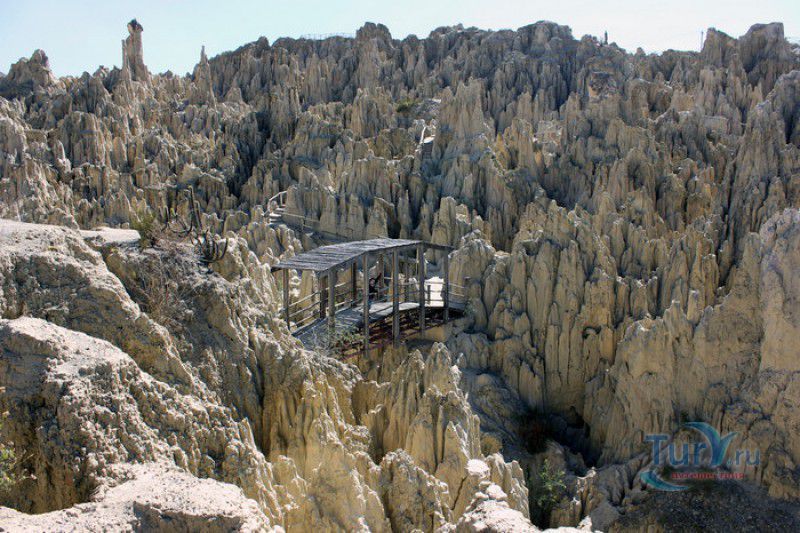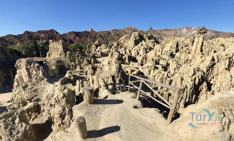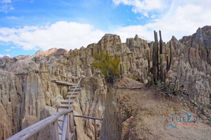 Лунная Долина расположена в Боливии, в 11 км от центра города Ла-Пас. Геологическое "чудо природы", представляющее собой лабиринт каньонов и гигантских острых шпилей, образовалось в результате эрозии - на протяжении веков вода и ветер вытачивали в глинистой горной породе сюрреалистические пейзажи. Своё название Лунная долина получила с лёгкой руки американского астронавта Нила Армстронга - первого человека, ступившего на Луну. Местные жители утверждают, что, увидев скальные конусы, кратеры и впадины, легендарный астронавт сравнил причудливый рельеф местности с поверхностью Луны. Благодаря различному минеральному составу горной породы, скалистые структуры отличаются разнообразием оттенков - от бежевого до красноватого и тёмно-фиолетового. В долине растут несколько видов кактусов, в том числе San Pedro, содержащий сильный галлюциноген мескалин. Из животных здесь обитают несколько видов ящериц и странный зверёк - горная вискаша, грызун семейства шиншилловых, внешне напоминающий кролика, но с беличьим хвостом. Для посетителей оборудованы пешеходные маршруты по Лунной долине, в некоторых местах тропа довольно узкая и обрывистая, есть подвесные мостики и крутые лестницы. С обзорной площадки Точка Дьявола открывается панорамный вид на город и живописные окрестности. На входе в Лунную долину есть небольшой туристический информационный центр, желающие остаться на ночь могут остановиться в расположенном неподалёку кемпинге.