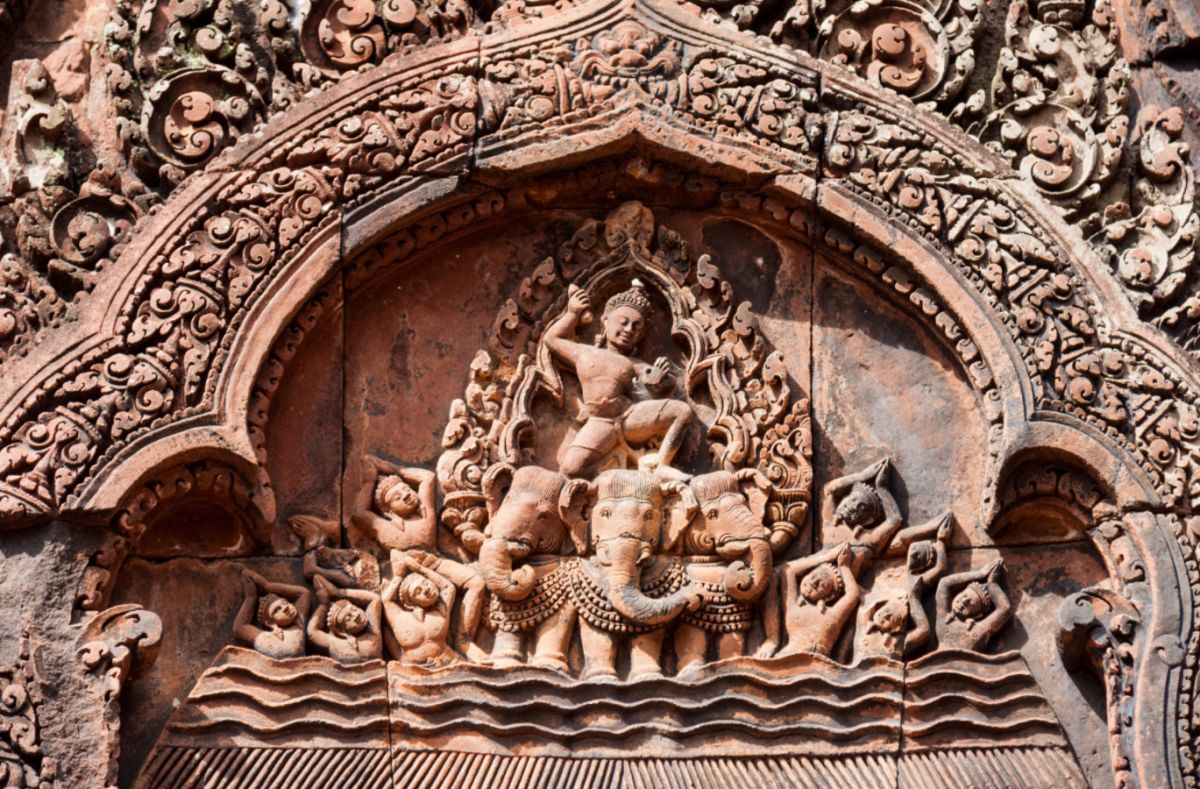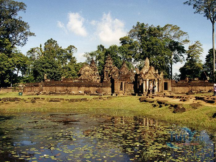Храм Бантеайсрей был освящен в 967 году. Это был единственный значительный храм в Ангкоре, построенный не монархом Раджендраварманом, а его придворным советником, ученым и филантропом по имени Яджнавараха. Известно, что он помогал страдающим от болезней, несправедливости и бедности.