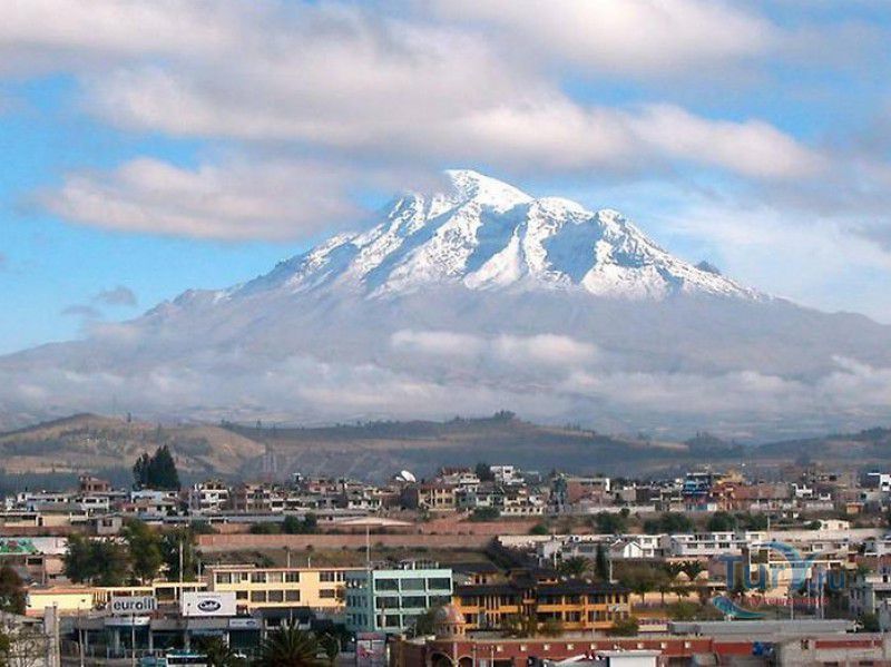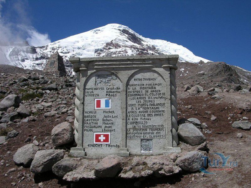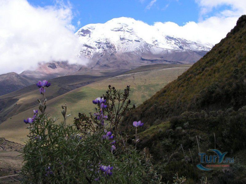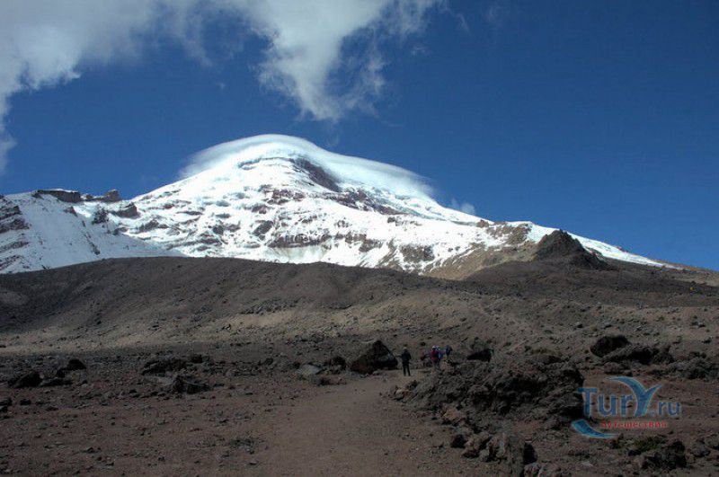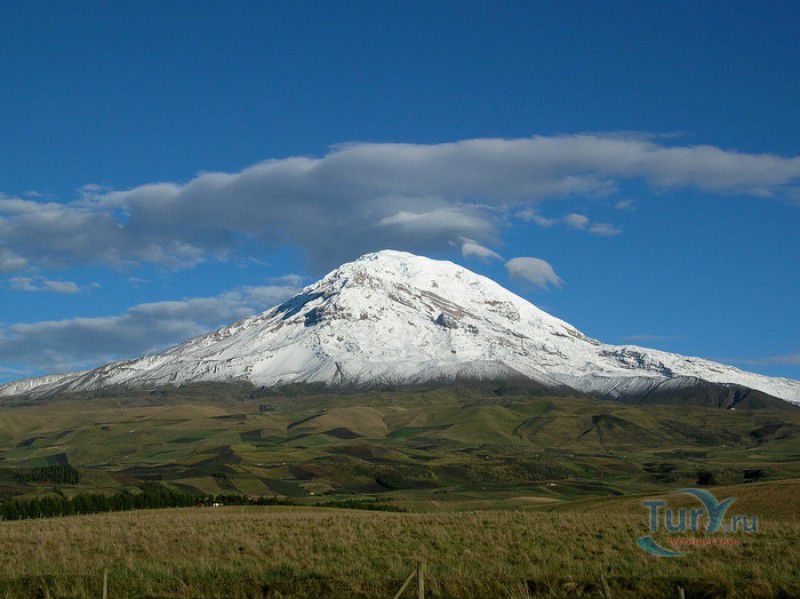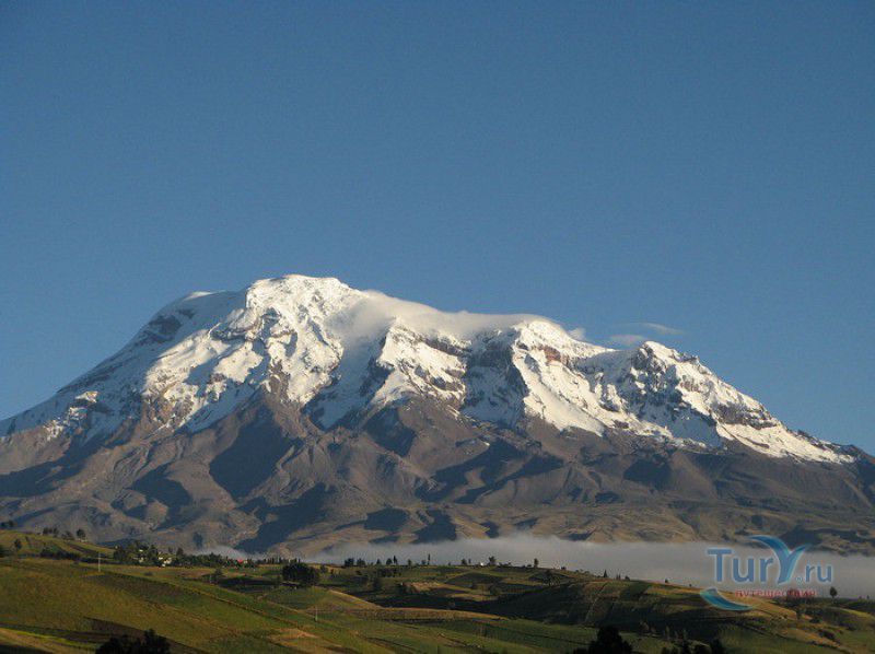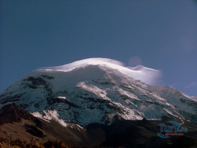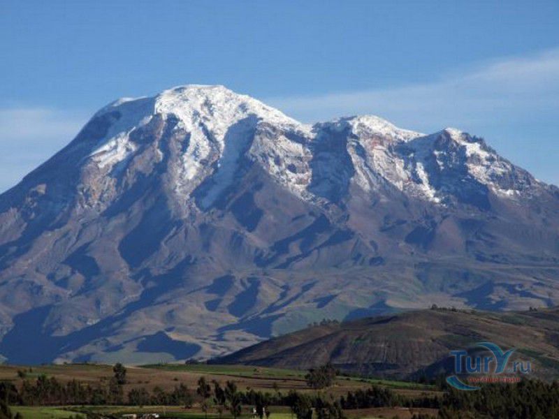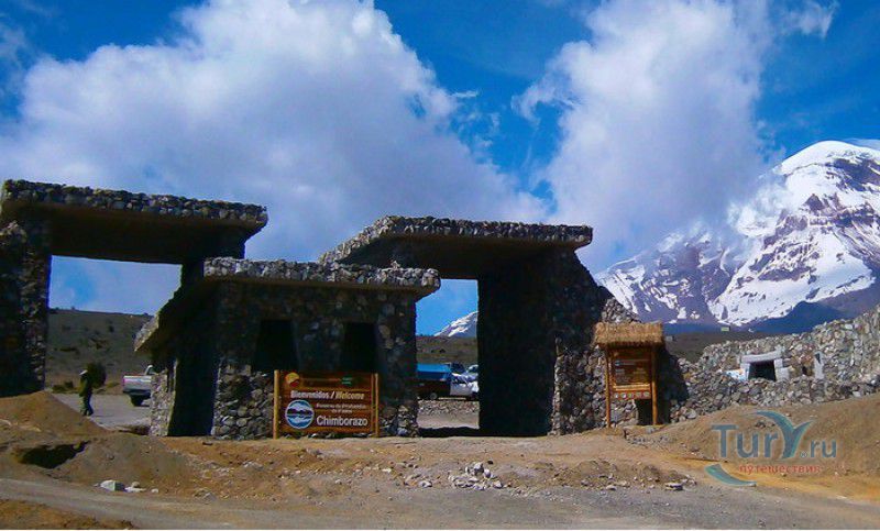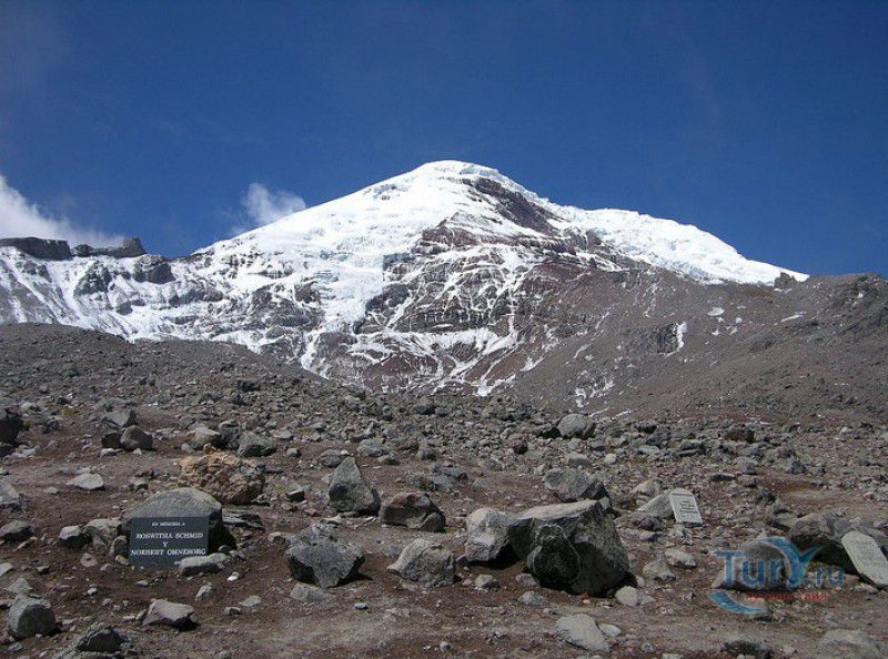 Вулкан Чимборасо расположен в центральной части Эквадора, на территории эквадорских Анд, входит в состав горного хребта Кордильера-Оксидеталь. Потухший стратовулкан Чимборасо является самой высокой горой Эквадора, вершина которой находится на высоте 6310 метров над уровнем моря. Благодаря расположению вулкана в зоне Экваториальной выпуклости, его вершина является самой удалённой от центра Земли точкой на поверхности Земного шара. Долгое время Чимборасо считался высочайшим горным пиком в мире, в 1856 году пальма первенства перешла к Эвересту, высота которого - 8848 метров над уровнем моря, была определена индийскими математиками. Вершина вулкана полностью покрыта льдами, на северо-восточном склоне ледниковый рукав спускается до 4600 метров над уровнем моря. Кальдера потухшего вулкана находится на высоте 5020 метров, её диаметр - около 2 км, края скалистые, пикообразные. Чимборасо имеет четыре вершины - пик Уимпер (6310 метров), пик Вентимия (6227 метров), пик Политехнический (5570 метров) и пик Николя Мартинес (5570 метров). У подножия вулкана берёт своё начало река Гуаяс, впадающая в залив Гуаякиль. Первые попытки восхождения на вершину вулкана предпринимались уже в XVII веке. В 1802 году экспедиция барона Александра фон Гумбольда смогла достичь высоты 5875 метров, в 1831 году Жан-Батист Боссингальт и полковник Холл совершили восхождение на высоту 6006 метров над уровнем моря. Первыми, кто смог покорить неприступный Чимборасо, стали легендарные альпинисты Эдвард Уимпер и братья Луи и Жан-Антуан Каррель, поднявшиеся на вершину вулкана в 1880 году. Многие скептически восприняли известие о "взятии" вулкана, поэтому Эдвард Уимпер в этом же году совершил повторное восхождение на вершину Чимборасо, но уже по другому маршруту. Тропа Уимпера, которая проходит по западному склону вулкана и ведёт прямо к его вершине, и по сей день остаётся самым популярным альпинистским маршрутом. Существуют также несколько других путей к вершине, считающихся более сложными и опасными. На пути к вершине есть две перевалочные базы - хижина Карреля (расположена на высоте 4850 метров) и хижина Уимпера (расположена на высоте 5000 метров). Чимборасо опасен для альпинистов из-за частого схода лавин и камнепадов. В 1993 году здесь произошла одна из самых страшных трагедий в истории восхождений в Эквадоре - на подступах к вершине лавина накрыла группу альпинистов в составе 13 человек, 10 из которых навеки остались на склонах Чимборасо. В октябре 2002 года экспедиция, исследовавшая новый маршрут к вершине горы, обнаружила следы одной из самых крупных авиакатастроф в Эквадоре - обломки самолёта и останки пассажиров злополучного рейса 232, осуществлявшегося 15 августа 1976 года по маршруту Кито - Куэнка. Самолёт исчез с радаров в районе Чимборасо, его поиски продолжались больше месяца, но безрезультатно. Самолёт вместе с летевшими на нём 59 людьми был объявлен пропавшим без вести, и только спустя четверть века стала известна судьба борта HC-ARS. Тем не менее тысячи альпинистов со всего мира приезжают в Эквадор, чтобы покорить самую высокую вершину вблизи экватора. Чимборасо изображён на гербе Эквадора - вулкан и текущая у его подножия река Гуаяс символизируют красоту и природное богатство страны.