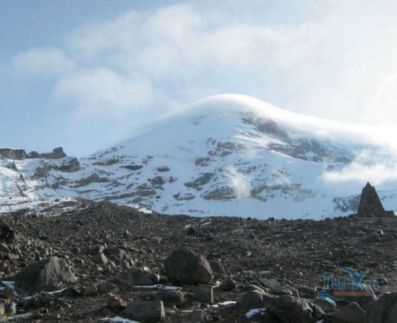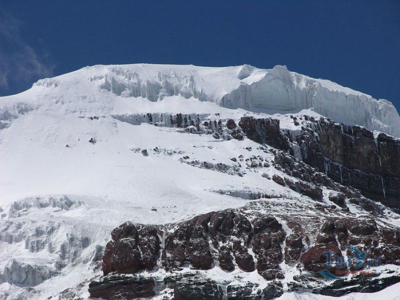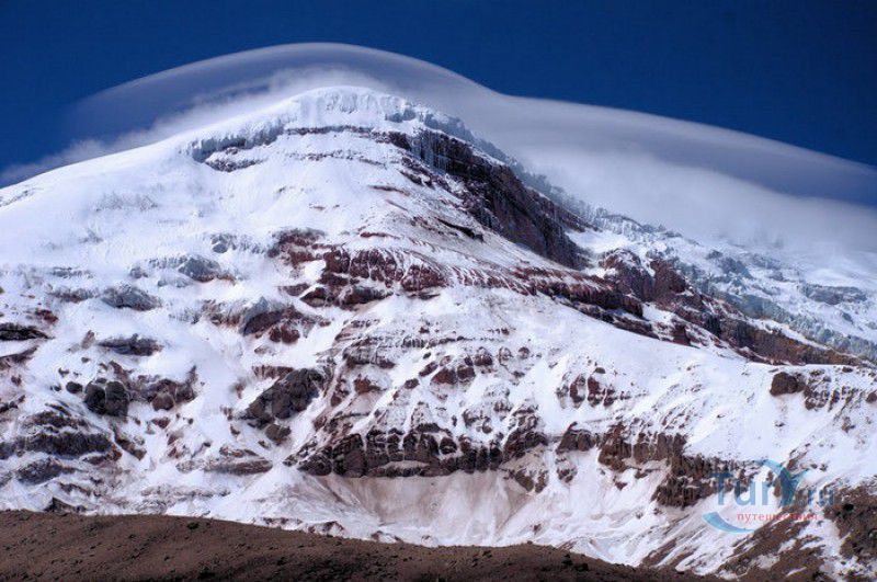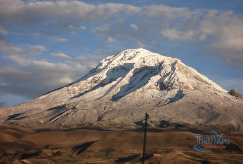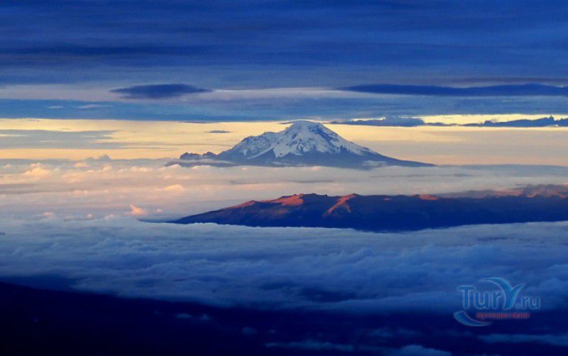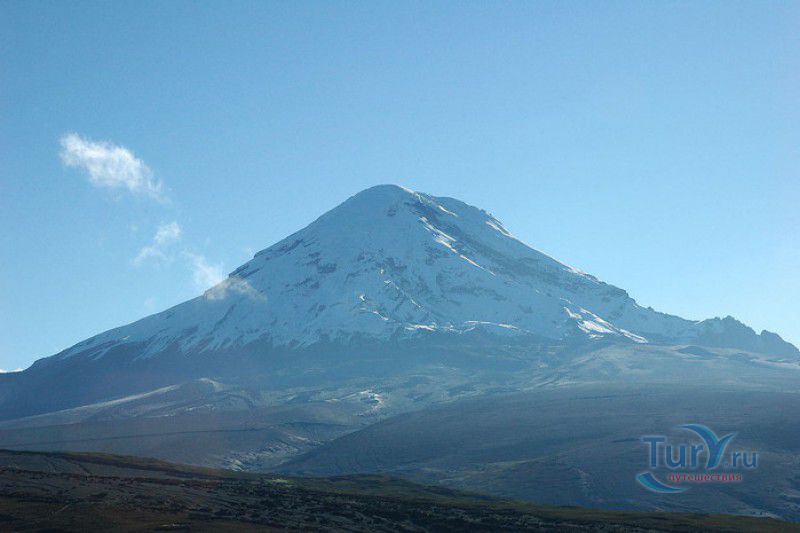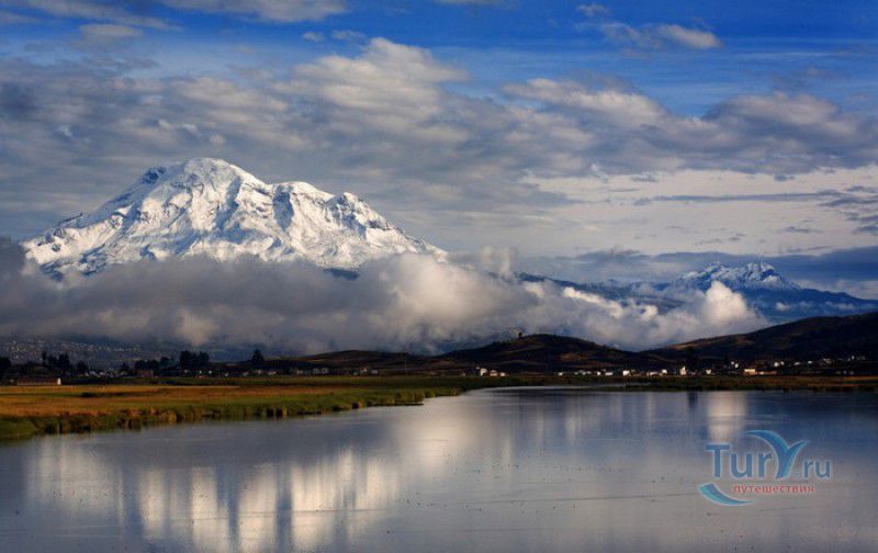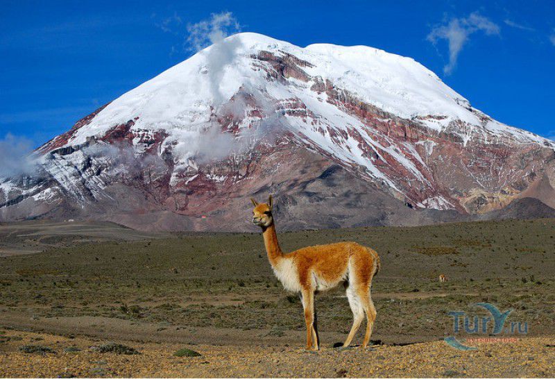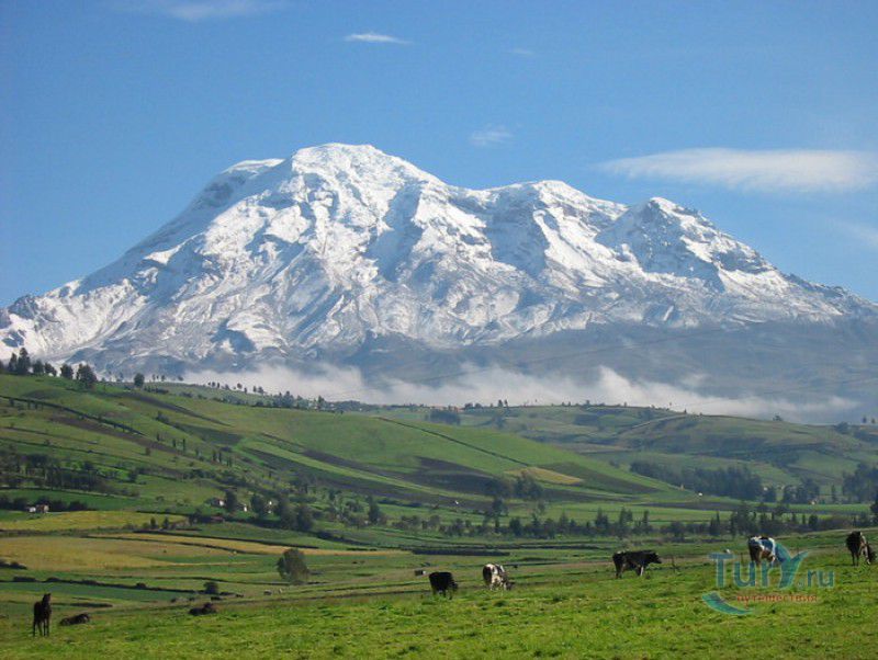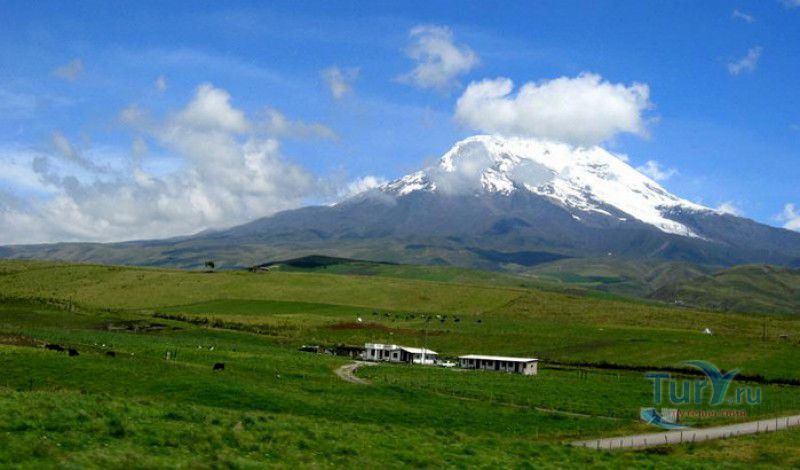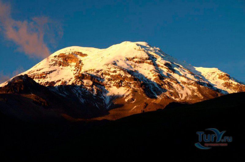 Вулкан Чимборасо расположен в центральной части Эквадора, на территории эквадорских Анд, входит в состав горного хребта Кордильера-Оксидеталь. Потухший стратовулкан Чимборасо является самой высокой горой Эквадора, вершина которой находится на высоте 6310 метров над уровнем моря. Благодаря расположению вулкана в зоне Экваториальной выпуклости, его вершина является самой удалённой от центра Земли точкой на поверхности Земного шара. Долгое время Чимборасо считался высочайшим горным пиком в мире, в 1856 году пальма первенства перешла к Эвересту, высота которого - 8848 метров над уровнем моря, была определена индийскими математиками. Вершина вулкана полностью покрыта льдами, на северо-восточном склоне ледниковый рукав спускается до 4600 метров над уровнем моря. Кальдера потухшего вулкана находится на высоте 5020 метров, её диаметр - около 2 км, края скалистые, пикообразные. Чимборасо имеет четыре вершины - пик Уимпер (6310 метров), пик Вентимия (6227 метров), пик Политехнический (5570 метров) и пик Николя Мартинес (5570 метров). У подножия вулкана берёт своё начало река Гуаяс, впадающая в залив Гуаякиль. Первые попытки восхождения на вершину вулкана предпринимались уже в XVII веке. В 1802 году экспедиция барона Александра фон Гумбольда смогла достичь высоты 5875 метров, в 1831 году Жан-Батист Боссингальт и полковник Холл совершили восхождение на высоту 6006 метров над уровнем моря. Первыми, кто смог покорить неприступный Чимборасо, стали легендарные альпинисты Эдвард Уимпер и братья Луи и Жан-Антуан Каррель, поднявшиеся на вершину вулкана в 1880 году. Многие скептически восприняли известие о "взятии" вулкана, поэтому Эдвард Уимпер в этом же году совершил повторное восхождение на вершину Чимборасо, но уже по другому маршруту. Тропа Уимпера, которая проходит по западному склону вулкана и ведёт прямо к его вершине, и по сей день остаётся самым популярным альпинистским маршрутом. Существуют также несколько других путей к вершине, считающихся более сложными и опасными. На пути к вершине есть две перевалочные базы - хижина Карреля (расположена на высоте 4850 метров) и хижина Уимпера (расположена на высоте 5000 метров). Чимборасо опасен для альпинистов из-за частого схода лавин и камнепадов. В 1993 году здесь произошла одна из самых страшных трагедий в истории восхождений в Эквадоре - на подступах к вершине лавина накрыла группу альпинистов в составе 13 человек, 10 из которых навеки остались на склонах Чимборасо. В октябре 2002 года экспедиция, исследовавшая новый маршрут к вершине горы, обнаружила следы одной из самых крупных авиакатастроф в Эквадоре - обломки самолёта и останки пассажиров злополучного рейса 232, осуществлявшегося 15 августа 1976 года по маршруту Кито - Куэнка. Самолёт исчез с радаров в районе Чимборасо, его поиски продолжались больше месяца, но безрезультатно. Самолёт вместе с летевшими на нём 59 людьми был объявлен пропавшим без вести, и только спустя четверть века стала известна судьба борта HC-ARS. Тем не менее тысячи альпинистов со всего мира приезжают в Эквадор, чтобы покорить самую высокую вершину вблизи экватора. Чимборасо изображён на гербе Эквадора - вулкан и текущая у его подножия река Гуаяс символизируют красоту и природное богатство страны.