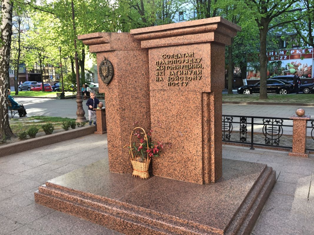 В городе Житомире есть удивительное место - это Старый бульвар. Любимое место отдыха житомирян. Бульвар это часть городской жизни. Здесь напротив Управления МВД стоит памятник "Солдатам правопорядка Житомирщины, погибшим на боевом посту". Украинский народ склоняет голову пред памятью стражей Закона и Правопорядка, которые выполнили свой профессиональный долг ценой собственной жизни, для которых защита и спокойствие людей стали смыслом их земного бытия. Каждый год, 22 августа, вокруг памятника собираются люди, чтобы почтить память героев. Сотрудники органов внутренних дел погибли при исполнении служебных обязанностей - не на поле боя, а в мирное время, в борьбе с преступностью.