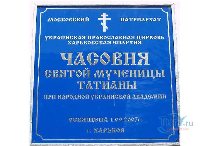 1 сентября 2007 года в Харькове была открыта и освящена Студенческая часовня Святой мученицы Татианы при Народной украинской академии. Местом строительства стал склон холма над Журавлевским массивом, рядом с улицей Веснина. Белое здание часовни с золотым куполом находится в очень красивом месте, с высоты которого видно полгорода. В часовне совершаются молебны по церковным праздникам, знаменательным датам Академии, к началу учебного года, к началу экзаменационной сессии, таинство обряда крещения детей. Первыми, кто окрестил своих детей в часовне, стали выпускники Академии. Строительство часовни Святой Татьяны можно считать шагом к возрождению духовно-образовательных традиций православия и приобщению студенчества к этим многовековым традициям и собственной истории.
