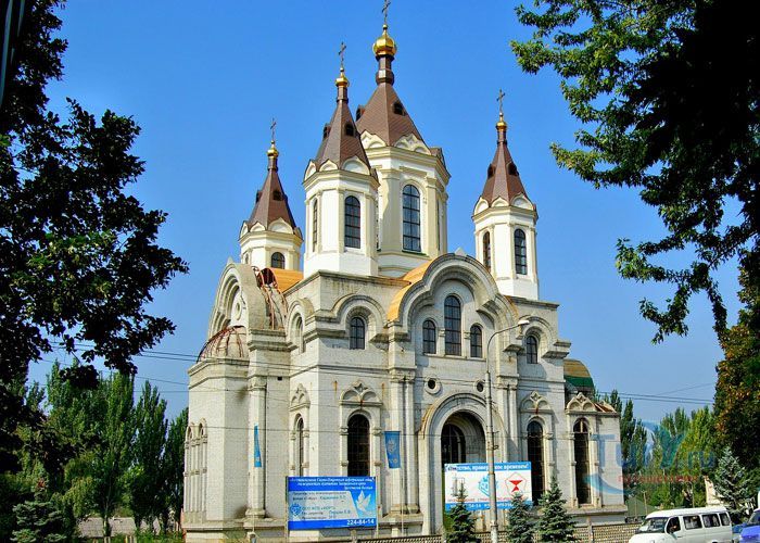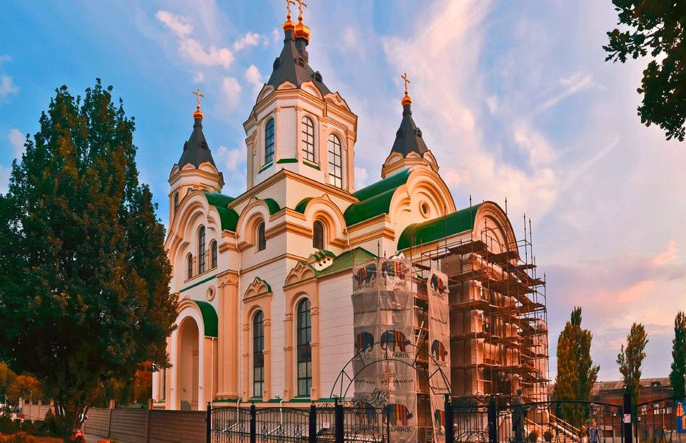 Первая деревянная церковь на месте Покровского храма была построена в 1778 году, а 5 мая 1886 года на месте уже разобранного здания заложили новый кафедральный Свято-Покровский собор, разрушенный большевиками в 30-е годы ХХ века. Собор, который располагался на Соборной площади бывшего Александровска, ныне Запорожья, в конце XIX начале XX веков воссоздан в его первоначальной красе благодаря архитектору Дмитрию Романову. Именно он нашел в Санкт-Петербурге, в Синодальном архиве фотографии собора, действовавшего на этом месте до Октябрьской революции 1917 года. Строительство почти точной копии разрушенного собора длилось 14 лет. Освящение уже отреставрированного кафедрального собора состоялось 14 октября 2007 года. Новый Свято-Покровский собор стал настоящей жемчужиной Запорожья.
