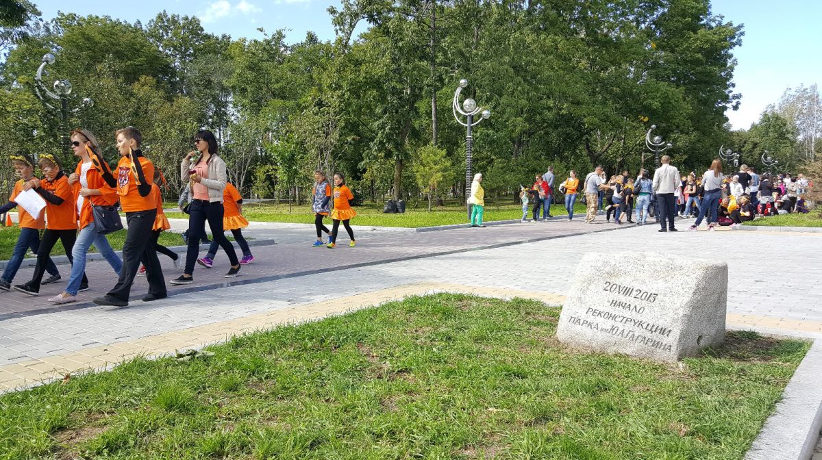 29 мая 1962 года, следуя в Японию, в Хабаровске остановился Юрий Алексеевич Гагарин - первый человек в мировой истории, первый космонавт совершивший полёт в космическое пространство. Парк в Хабаровске, который назван в честь космонавта, был заложен жителями города. Именно здесь Юрий Алексеевич посадил лиственницу, которая напоминает нам о мировой знаменитости. В парке имени Гагарина находится Хабаровский государственный цирк.