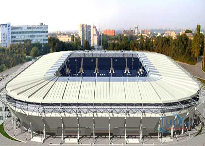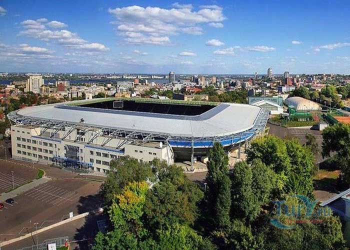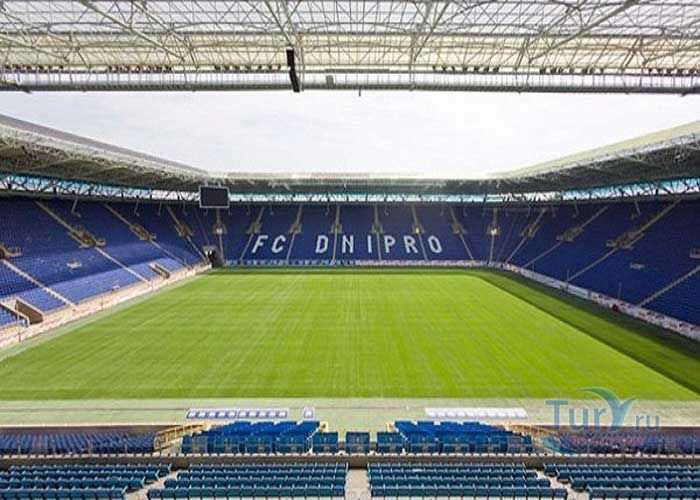 Футбольный стадион "Днепр-Арена" в Днепре торжественно открыт 14 сентября 2008 года. Главный стадион города Днепр стал первым на Украине новым стадионом, подготовленным к Евро 2012. Стадион можно назвать гордостью города, он оснащен по последнему слову техники. На стадионе очень удобные откидные сидения, великолепное освещение, торговые точки с продуктами питания и сувенирами, просторный ресторан на 550 мест, просторный конференц-зал. Не забыли и о людях с ограниченными возможностями, для них оборудована специальная площадка с удобным въездом. Зрителям на стадионе остается только получать удовольствие от игры футбольных команд.