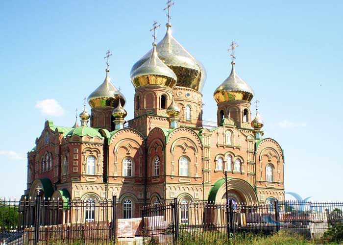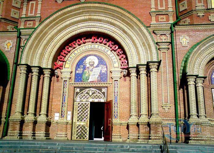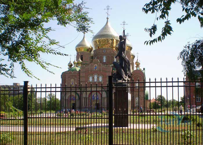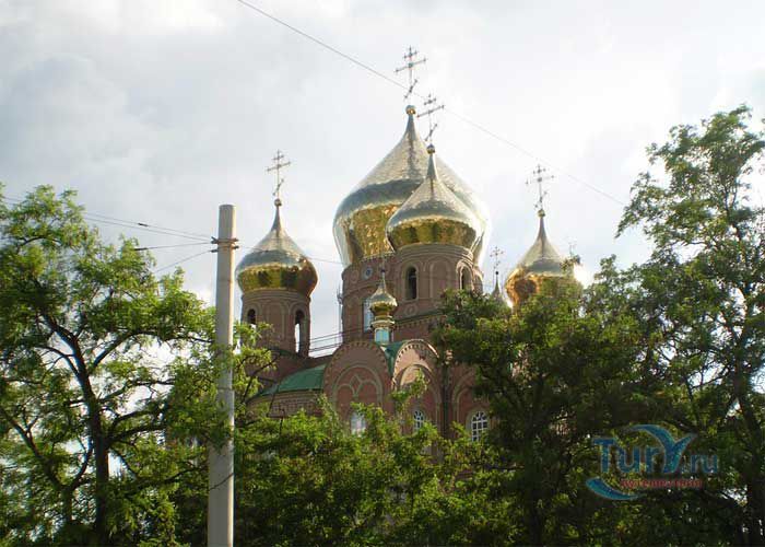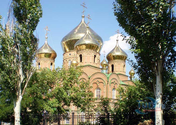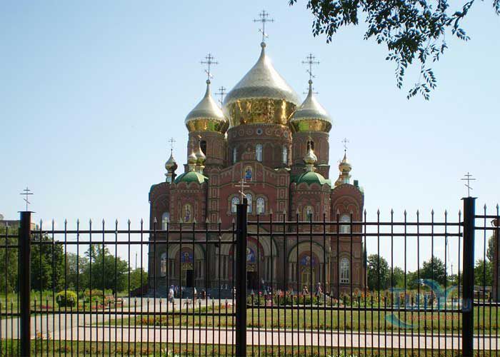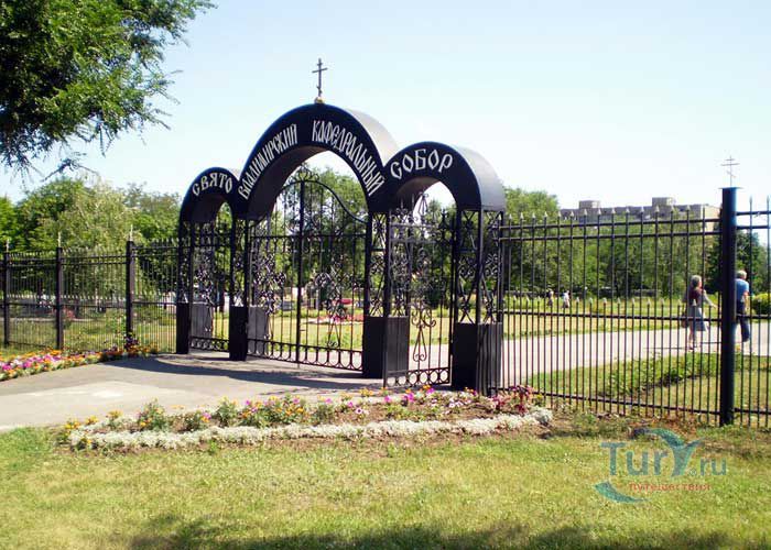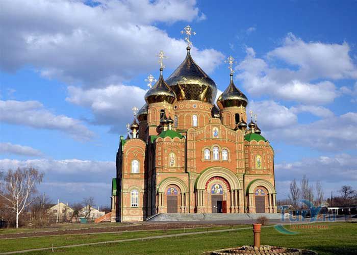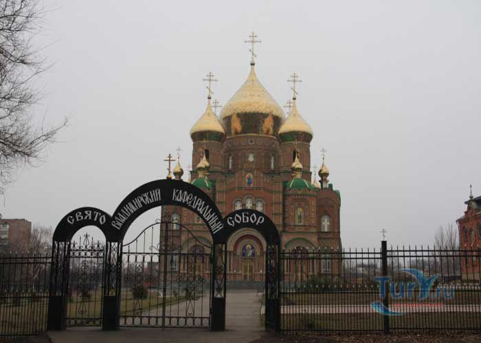 Свято Владимирский кафедральный собор в Луганске был заложен 9 апреля 1993 года, а освящен 19 марта 2006 года Митрополитом Киевским и всея Украины. Храм - особое место, где страждущие души людей находят покой в божественной службе, тихой молитве, горении свечи. Одним из таких островков духовности является Свято-Владимирский кафедральный собор города Луганска. На сегодняшний день это самое большое культовое сооружение юго-восточной Украины. Благодаря своей уникальной архитектуре, прекрасному месторасположению, а также роскошному внутреннему убранству, Свято-Владимирский кафедральный собор получил статус памятника истории и архитектуры. Храм увенчан 15 позолоченными куполами, под каждым из которых находится колокол. Собор высотой 65 метров, построен в виде креста восхищает своим величием и красотой. В комплексе собора расположен Луганский богословский университет.
