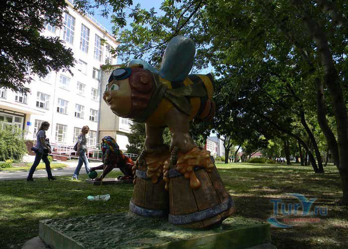 Парк под названием "Сказочный мир" был открыт 1 сентября 2012 года на территории Луганского национального университета имени Т.Г. Шевченко. Идея создания "Сказочного мира" принадлежит заслуженному работнику культуры Украины, скульптору, доценту кафедры изобразительного искусства и профессионального мастерства ЛНУ имени Шевченко - Андрею Боровому. В основе идеи парка - пропаганда славянской сказки. Все персонажи очень яркие и красочные, интересны даже для самых маленьких. Большие красивые скульптуры, которые изображают многих знакомых и полюбившихся героев украинских и русских народных сказок и былин радуют и взрослых и детей. Скульптуры создаются студентами университета, которые не собираются останавливаться на достигнутом и каждый год будут создавать новых персонажей.