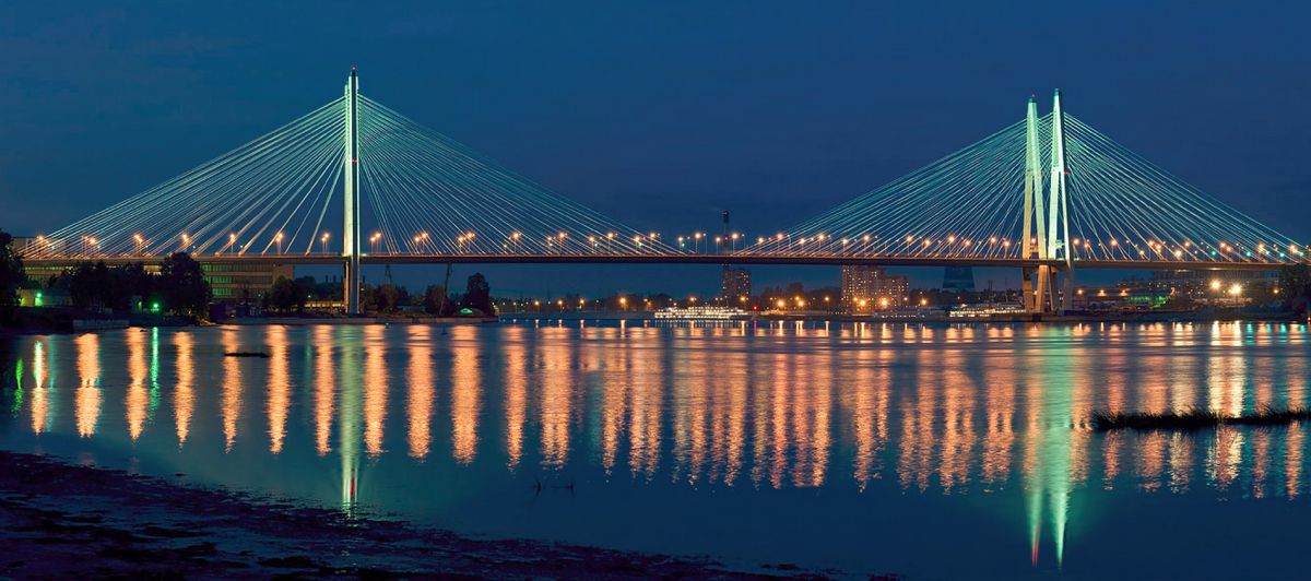 Проекты мостов, не имеющих опор в русле реки, разрабатывались еще в XVIII веке знаменитым инженером И. Кулибиным, однако первый в стране вантовый мост был построен только в 1979 г. в Череповце. Реализовать аналогичную идею в Северной столице попытались в 1990-х, но не смогли из-за недостатка технических возможностей. И только в середине 2000-х гг. давняя мечта петербургских мостостроителей исполнилась: русло Невы удалось перекрыть всего одним мостовым пролетом.