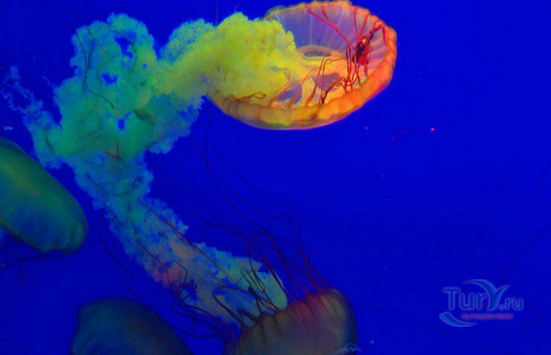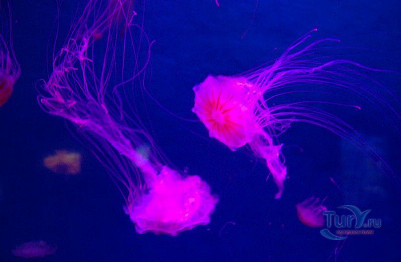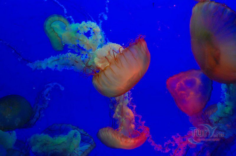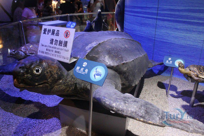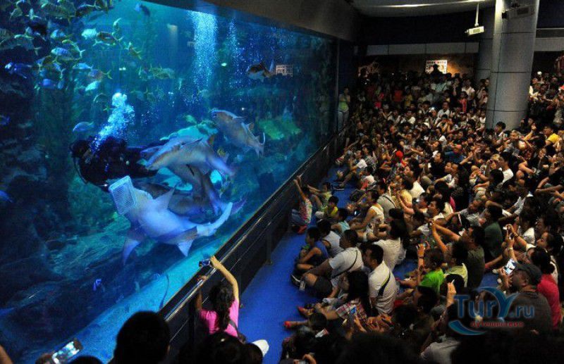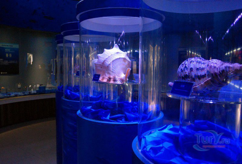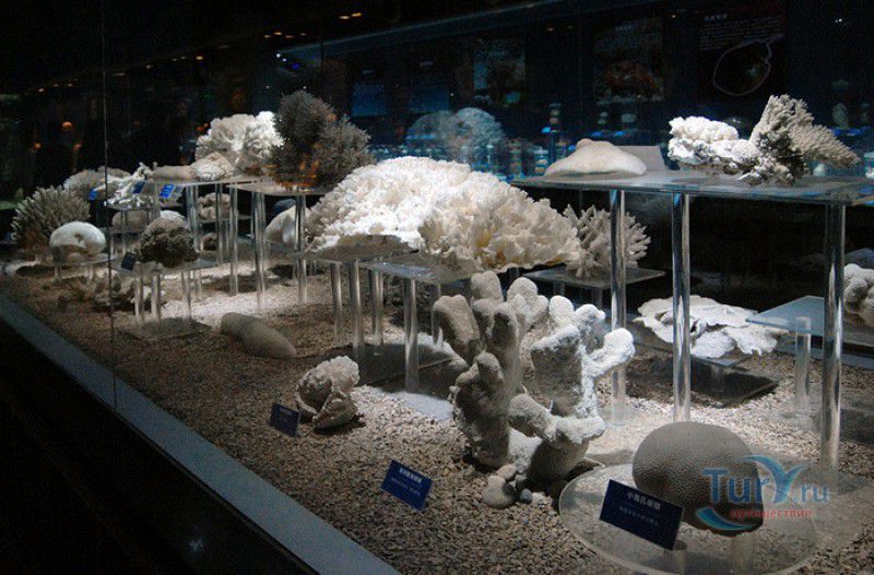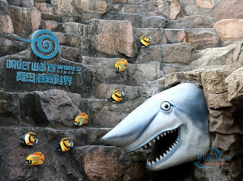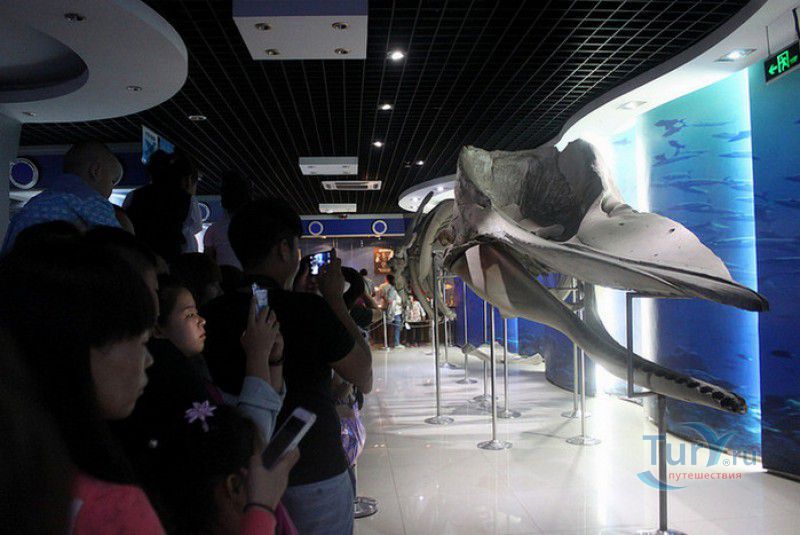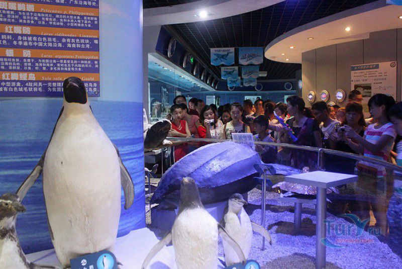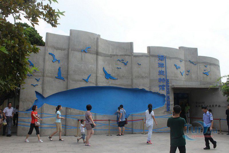 Аквариум Циндао - самый первый Аквариум в Китае, был открыт 8 мая 1932 года, он расположен рядом с парком Лу Синь, на берегу залива Хукуан. Его здание, стилизованное под старинную китайскую крепость, со всех сторон окружённую высокими гранитными стенами, входит в список десяти самых красивых зданий города Циндао. Аквариум Циндао состоит из пяти тематических зон - Подводный мир, Дворец медуз, Морская биологическая выставка, Музей морских животных и Пресноводный аквариум. Дворец медуз (Fantasy Jellyfish Palace) находится в главном здании Аквариума. В выставочном зале представлены сотни видов медуз, обитающих в морях и океанах всего мира. Кроме того, здесь организована научная лаборатория по изучению и разведению медуз. Морской Биологический выставочный зал (Marine Biological Exhibition) был построен в 1936 году, сначала это был Морской биологический институт Циндао, в 1955 году реорганизованный в музей. Его коллекция насчитывает более 1000 морских и 20000 океанических биологических видов - водоросли, кораллы, раковины гигантских моллюсков, крабы, морские черепахи, киты, акулы, тропические и глубинные рыбы. В 1966 году на территории Аквариума был открыт Музей морских животных (Marine Animal Museum). В центре музея расположен большой открытый бассейн с тюленями (ежегодно здесь рождаются 3 - 4 тюленьих детёныша). По периметру бассейна размещены просторные вольеры с морскими львами, пингвинами и морскими черепахами. Пресноводный Аквариум (Freshwater Aquarium) был построен в 1995 году. В нём представлены обитатели китайской реки Янцзы, а также пресноводные виды рыб из Южной Америки, Африки и Южной Азии. Посетители могут увидеть одну из самых крупных пресноводных рыб мира арапаиму, обитающую в водах Амазонки, гигантскую саламандру, кефаль, осетра, китайского аллигатора и разноцветных цихлид. В 2003 году для посетителей был открыт Подводный мир (Qingdao Underwater World) - подземный 86-метровый стеклянный тоннель, в котором посетителей со всех сторон окружают тропические рыбы, кораллы, актинии, акулы, морские скаты. Ежедневно здесь проходит зрелищное шоу "Танец с акулами" и подводный спектакль-балет "Русалочка".