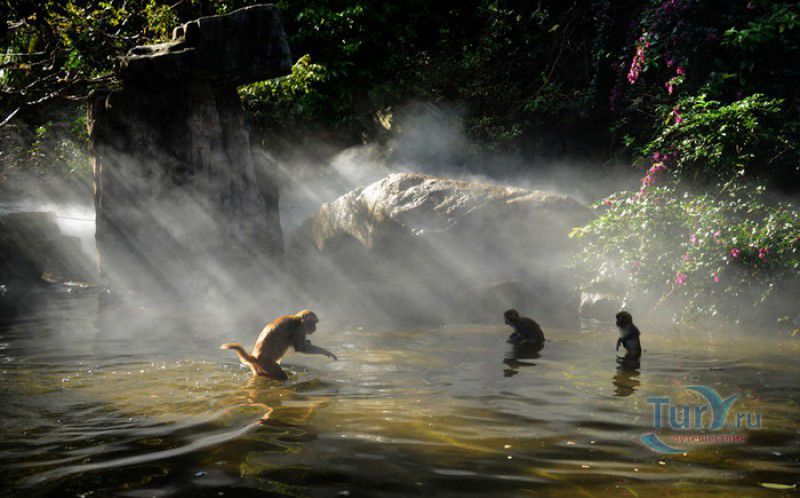Остров Обезьян - единственный в мире тропический остров-заповедник, в котором обитают около 1500 особей макак-резусов, находящихся под охраной государства, и одновременно туристическая достопримечательность Китая, имеющая статус АААА (аналог 4*). Остров Обезьян расположен на юго-востоке острова Хайнань, в 14 км от города Линшуй, рядом с рыбацкой деревней Синцунь, от которой отделён небольшим проливом. В заповедник можно попасть либо на катере, либо по самой длинной в Китае надводной канатной дороге, протяженностью 2138 метров. Во время поездки из кабины открывается живописная панорама морского побережья и рыбацкого посёлка, построенного на воде. Заповедник Остров Обезьян был основан в 1965 году, расположен на территории площадью 10000 квадратных километров, 95% которой занимает тропический лес. Тёплый климат, пышная растительность, гроты, пещеры и обилие тропических фруктов - настоящий обезьяний рай. В заповеднике для обезьян построен большой бассейн, есть горячие источники, в которых макаки принимают водные процедуры. На входе в заповедник обычно "дежурят" несколько макак с флагами в лапах, приветствуя таким образом гостей Острова Обезьян. Макаки абсолютно не боятся людей, подходят совсем близко и очень любят фотографироваться с посетителями. Однако, не стоит забывать, что обезьяны - дикие животные. Они могут быть агрессивными и очень навязчивыми, особенно, если "решат", что у посетителя есть что-либо съедобное. В заповеднике есть обезьяний цирк и театр, в которых выступают дрессированные макаки, выполняющие довольно сложные трюки. В специально отведенном месте и только в присутствии сотрудников заповедника можно угостить обезьянок их любимыми лакомствами. Рядом с бассейном всегда многолюдно - посетители с интересом наблюдают за головокружительными прыжками макак с вершины деревьев в воду. В жаркие дни обезьяны устраивают весёлые игры в воде и самые настоящие соревнования по плаванию. После посещения заповедника можно провести время на большом песчаном пляже и продегустировать блюда из морепродуктов в ресторанчиках, расположенных прямо на рыболовецких плотах.