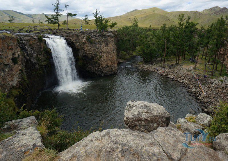 Водопад Улан Цутгалан (Водопад Орхон) расположен в центральной Монголии, в провинции Уверхангай, на территории Национального парка Долина реки Орхон, в 25 километрах к западу от посёлка Бат-Улзий (центра одноимённого сомона). Водопад Улан Цутгалан (в переводе с монгольского Красный приток) образует река Улан-Гол, правый приток реки Орхон. Более 20 000 лет назад у истоков реки Орхон, на территории горного массива Хангай, произошло сильнейшее извержение вулкана, долина реки Орхон была покрыта лавой более чем на 100 километров. Тысячи лет река протачивала себе дорогу в вулканических базальтах, прорезая глубокий каньон. В результате одного из землетрясений примерно в 100 метрах от места впадения Улан-Гола в реку Орхон образовался крутой обрыв высотой 24 метра, с которого вода обрушивается вниз двумя мощными потоками шириной 12 метров. У подножия водопада образовался природный бассейн, окружённый пышной растительностью. К подножию водопада ведут два спуска - ближайший, крутой и опасный, проходит через расщелину глубиной 20 метров, второй спуск расположен в 200 метрах от первого, этот путь намного безопаснее, его без труда преодолеют пожилые люди и дети. Особенно красив и полноводен водопад Орхон весной и после дождей, в засушливый период водопад теряет свою силу и может совсем пересохнуть. Улан Цутгалан - самый большой и живописный водопад в Монголии и одна из самых известных и посещаемых природных достопримечательностей страны. Улан Цутгалан пользуется большой популярностью как среди иностранных туристов, так и среди местных жителей. Несмотря на большое расстояние (около 450 километров) от Улан-Батора и достаточно утомительную дорогу (она проходит по базальтовому плато, очень камениста и ухабиста) в выходные дни здесь много отдыхающих из столицы, туристы останавливаются либо в туристических лагерях, расположенных в окрестностях Улан Цутгалана, либо ставят палатки прямо у водопада.