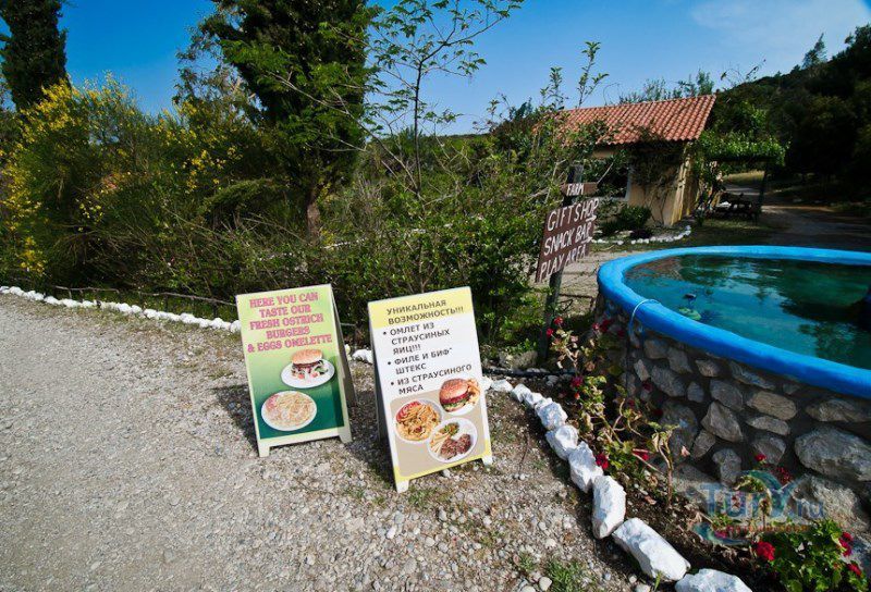 Страусиная ферма - это прекрасное развлечение для всей семьи. Ферма интересна не только страусами, здесь расположен мини зоопарк. Среди его обитателей можно увидеть различные виды птиц, верблюдов, оленей, ослов, коз и более 120 видов страусов. По территории величественно разгуливают павлины, раскинув свои веер-хвосты, выкрикивая свои песни. Вы можете совершить самостоятельную прогулку, а можете воспользоваться услугами гида, который расскажет Вам об обитателей зоопарка. Детям особенно понравится катание на верблюдах. При ферме есть магазинчик, где можно приобрести множество сувениров, связанных со страусами (брелки, магнитики, страусиные яйца, небольшую щетку из перьев для снятия пыли с компьютера, скорлупы и кожи). В местном кафе на обед Вам будет предложено изумительное страусиное мясо и омлет из страусиных яиц.