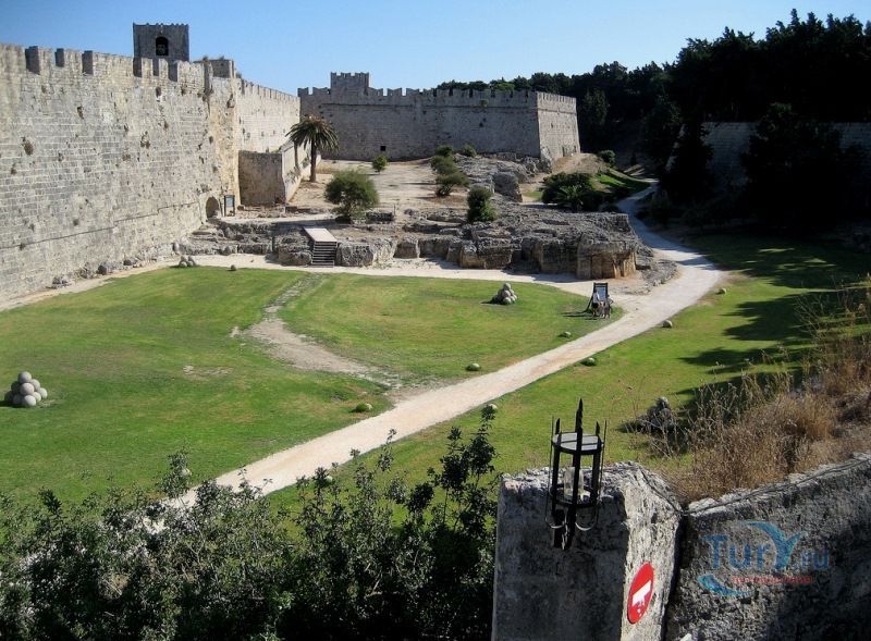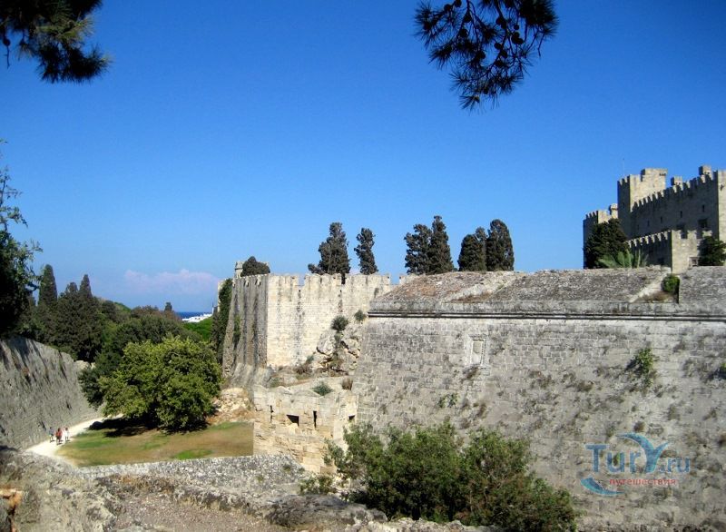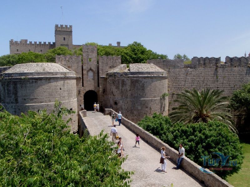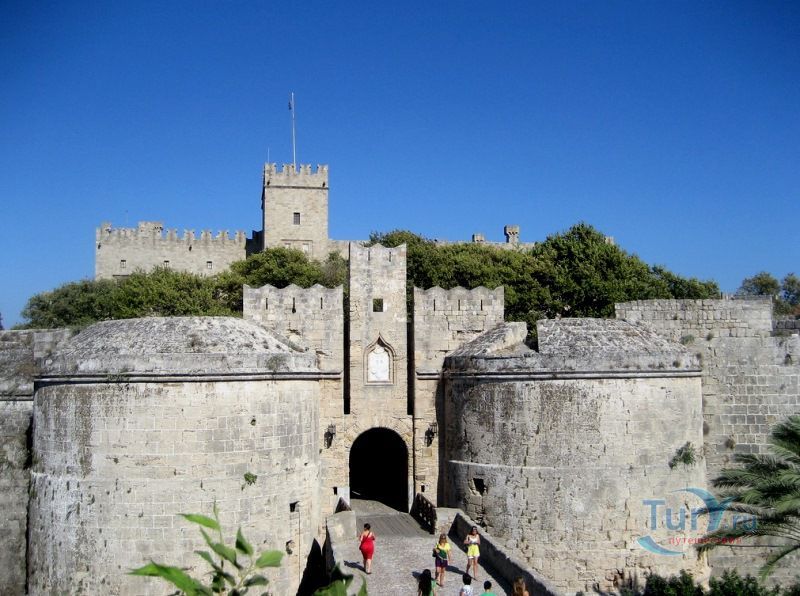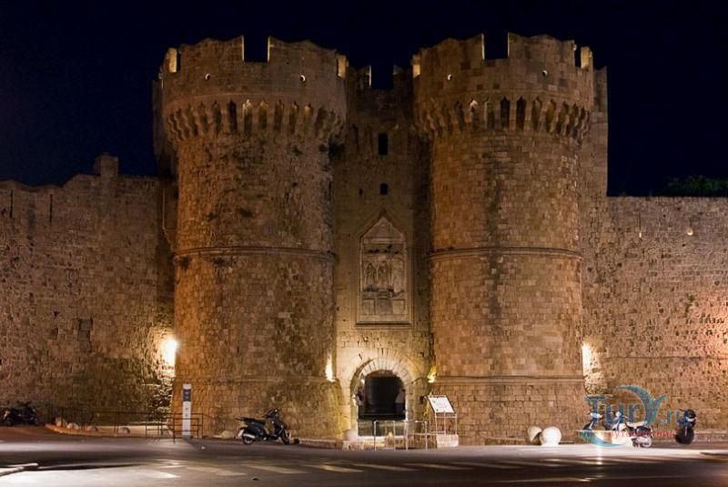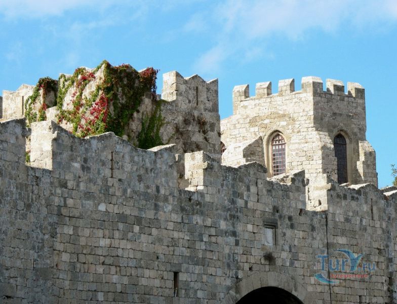 Средневековый город Родоса считается крупнейшим средневековым городом в Европе и имеет статус объекта Всемирного наследия ЮНЕСКО. Город окружен самой длинной крепостной стеной в Европе - 14,5 км. Внутрь ведут 11 ворот, но только 8 из них приведут Вас в сам город: ворота Святого Иоанна, ворота Святой Екатерины, ворота апостола Павла, ворота Амбуаз, ворота Святого Афанасия, ворота порта и ворота военно-морской базы. Через остальные ворота Вы можете попасть только за первую стену, и тогда Вам еще достаточно долго придется ходить по внутреннему периметру оборонительных сооружений. В верхней части стены существует 3 выхода. Самый короткий маршрут по верхней стене протяженностью 1300 м, второй - 1500 м, третий - 1750 м. Главные ворота находятся рядом с портом - ворота Святой Екатерины.