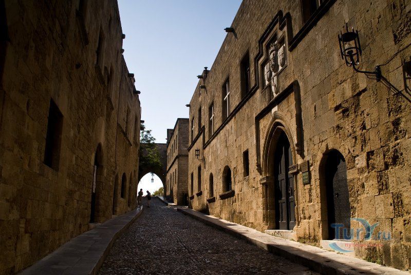 Улица Рыцарей (Иппотон) является центром рыцарского квартала Средневекового города Родоса. Она была вымощена в период правления иоаннитов. Улица тянется от центрального порта города к главной достопримечательности города - Дворец Великих Магистров. Длина улицы составляет 200 метров, ширина - 6 метров. Такая широкая прямая форма улицы была необычна для средневековых городов. Эта самая главная улица связывала религиозный и культурный центры города, т.е. Собор Пресвятой Девы Марии и дворец Великого Магистра. Вдоль улицы Рыцарей построены высокие сооружения из каменных блоков с плоскими фасадами, огромными дверными проемами и арочными окнами. Здесь располагались важнейшие общественные строения: дворец Великих Магистров, административный центр, католический кафедральный собор, госпиталь, резиденция разных "языков", дома рыцарей, пристань и арсенал.