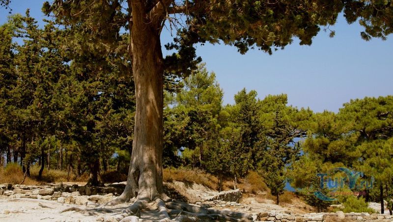 Сегодня от древнегреческого полиса, восстановленного после землетрясения 2200 лет назад и считавшегося одним из важнейших на острове, остались только руины крошечных домиков, подобие улиц, развалины хранилищ для еды и питья, несколько керамических водопроводных труб и пара наполовину восстановленных храмов.